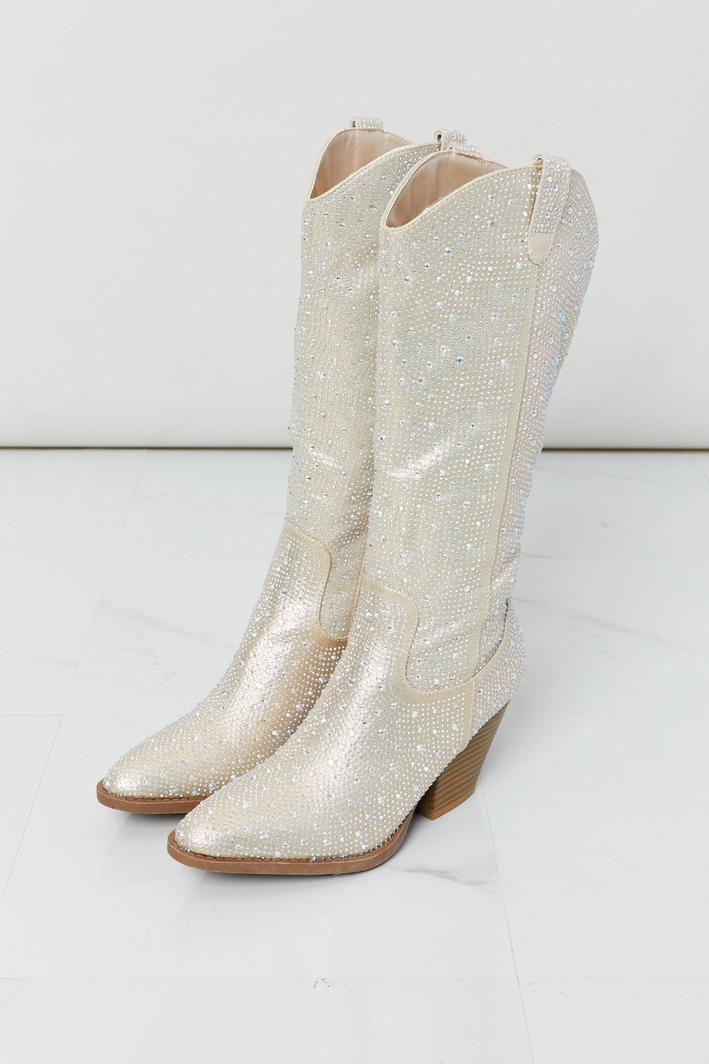 Add some sparkle and shine to your ensemble with these cute glitter boots. Featuring a zip closure and block heel, this pair is perfect for adding an extra splash of playfulness to any look.