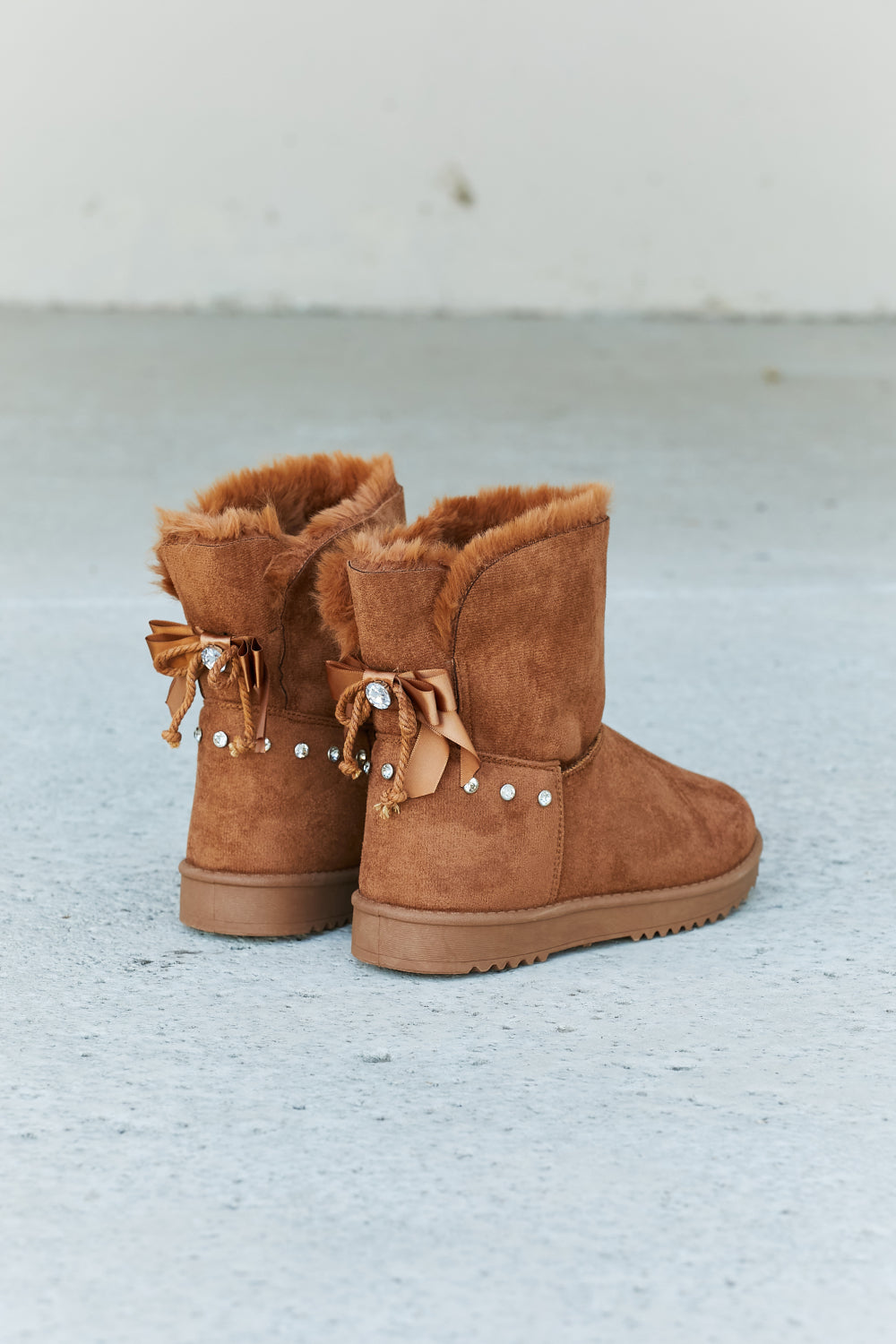 • Load image into Gallery viewer, Forever Link Rhinestone Bow Detail Snow Boots