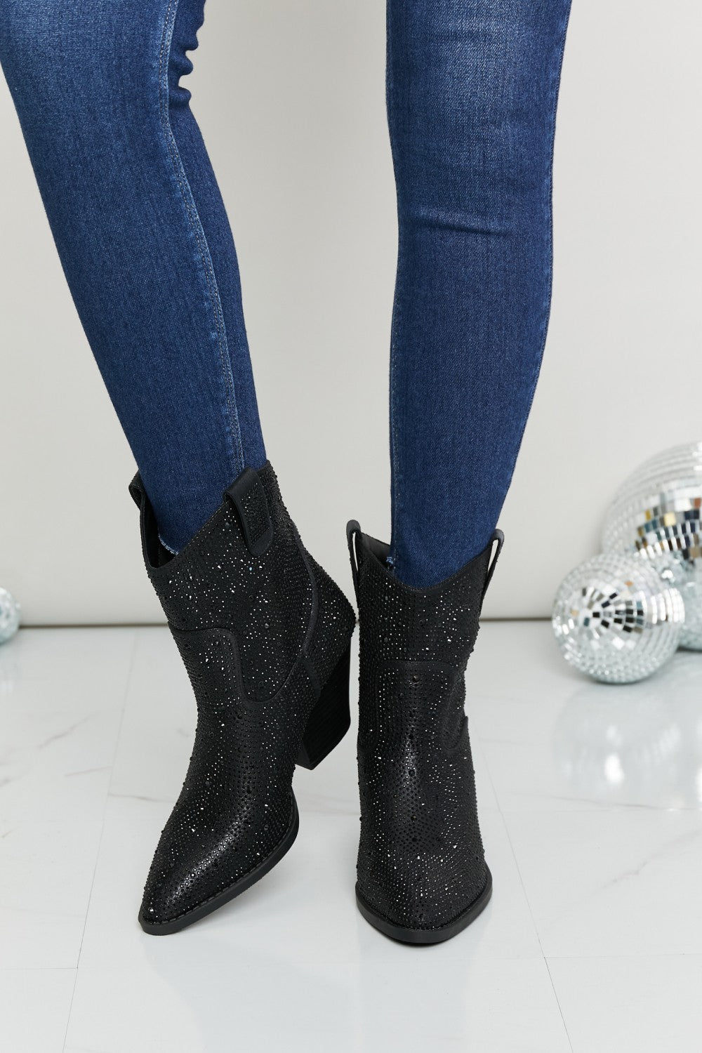 These booties are made for the most stylish women, who like to be comfortable and fashionable at the same time. Featuring a pointed toe with rhinestone details and block heel, these cowboy boots will give you an edge without sacrificing style.