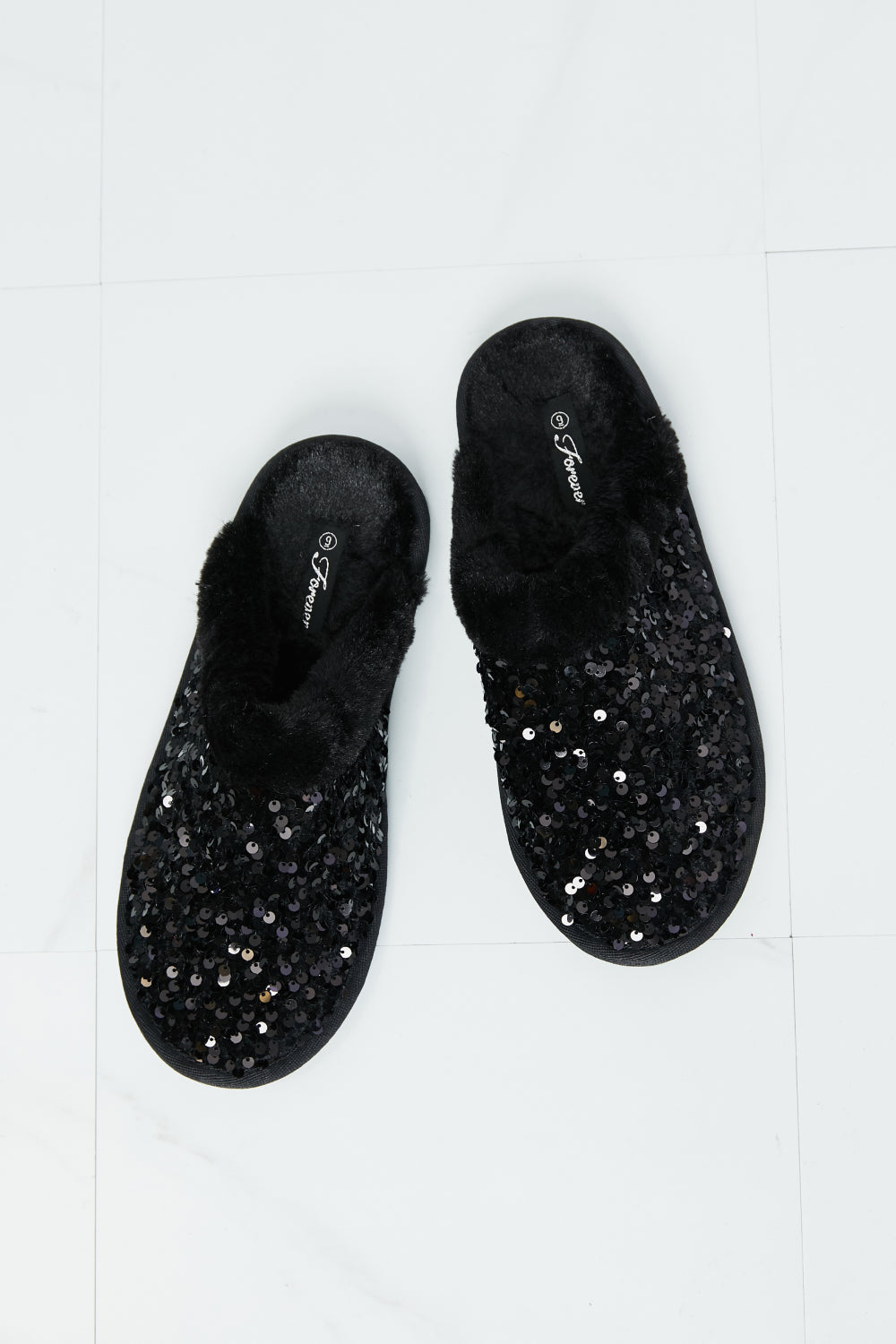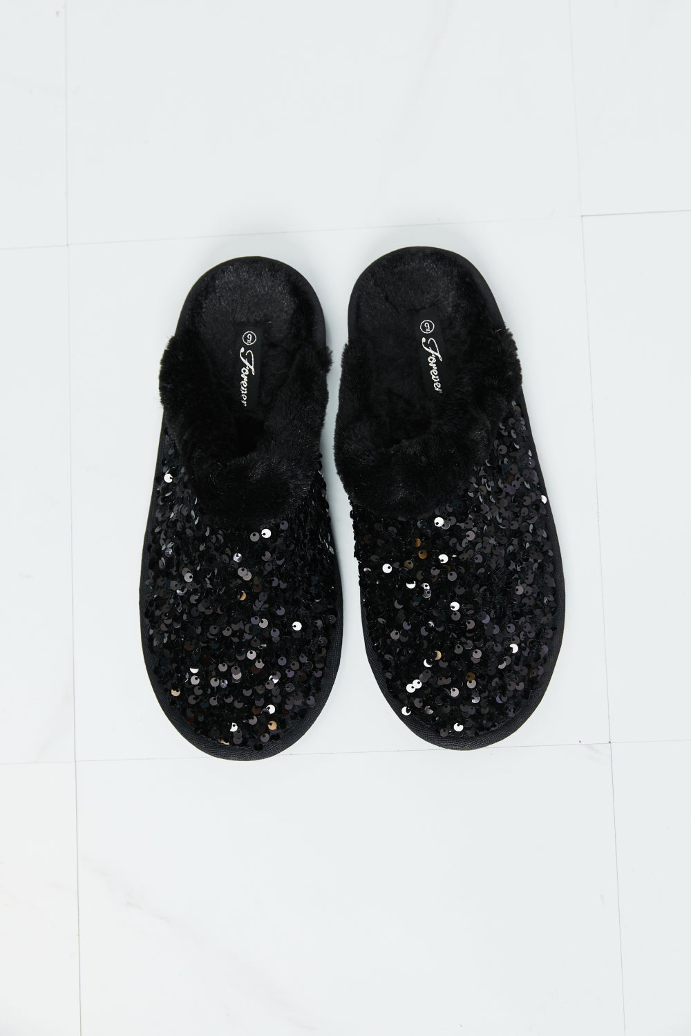 • Load image into Gallery viewer, Forever Link Sequin Faux Fur Slipper in Black