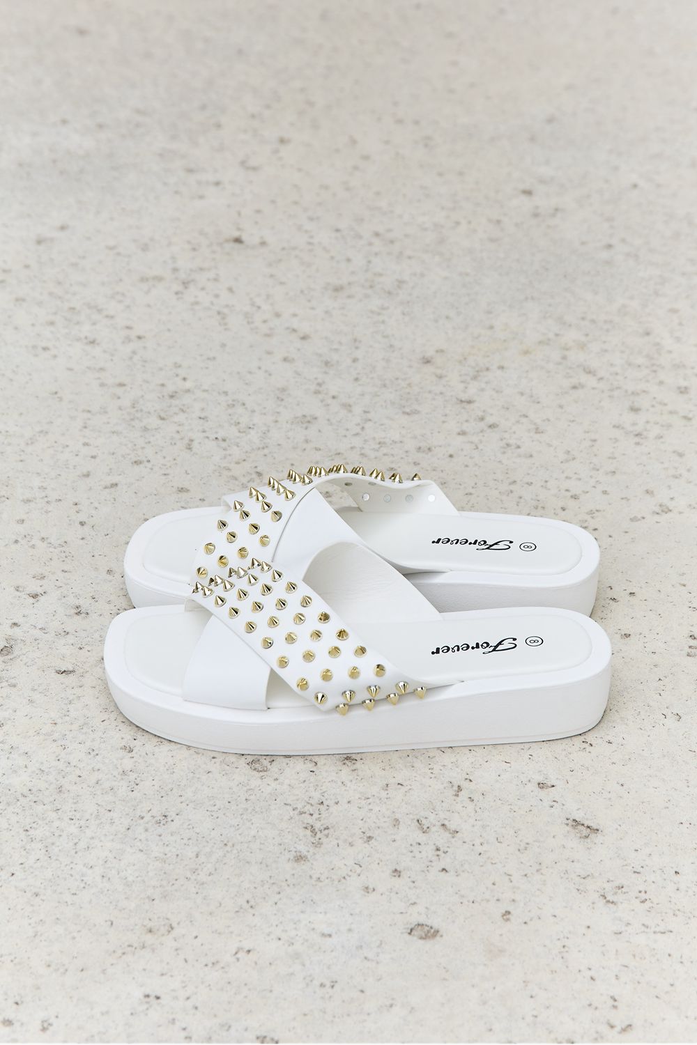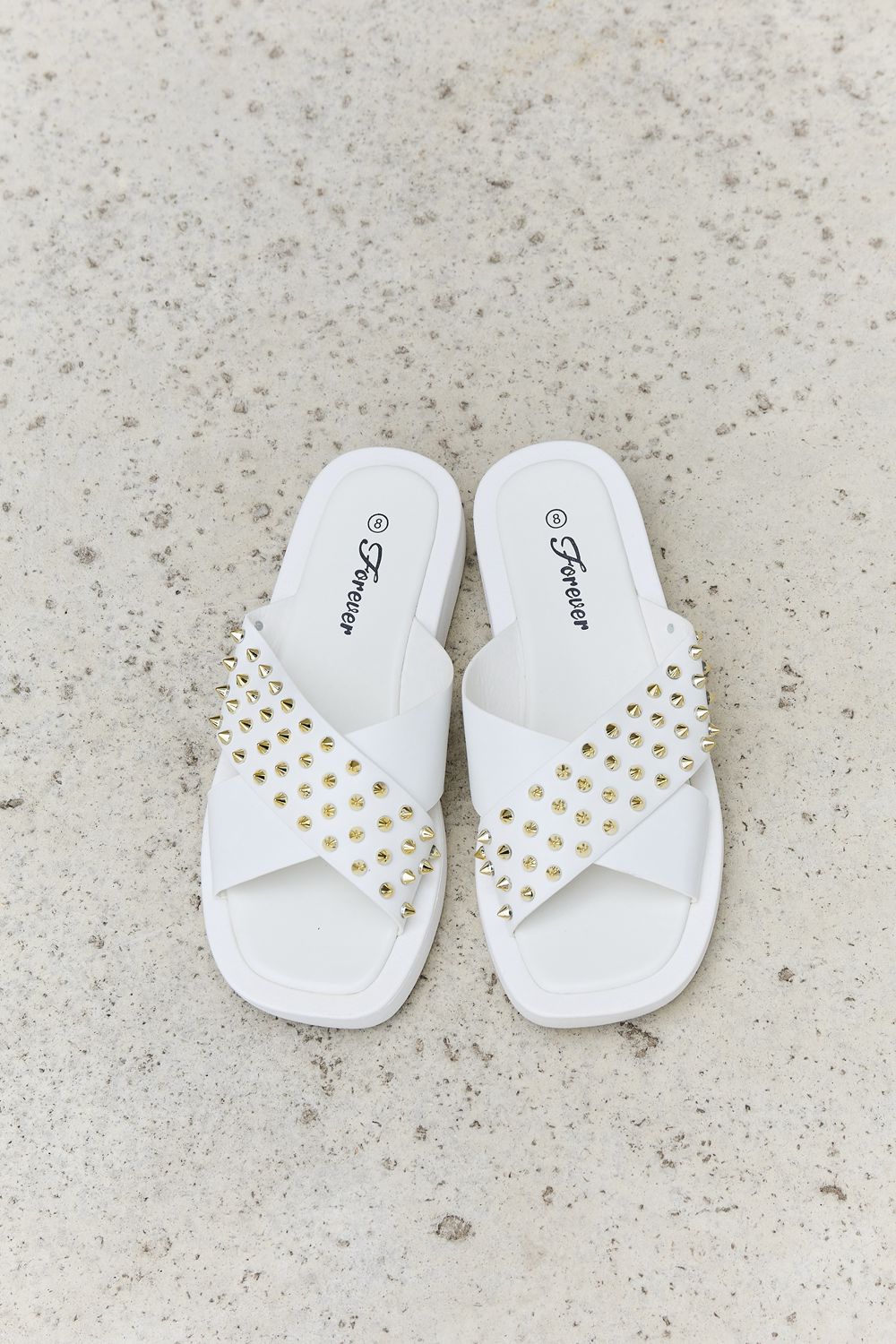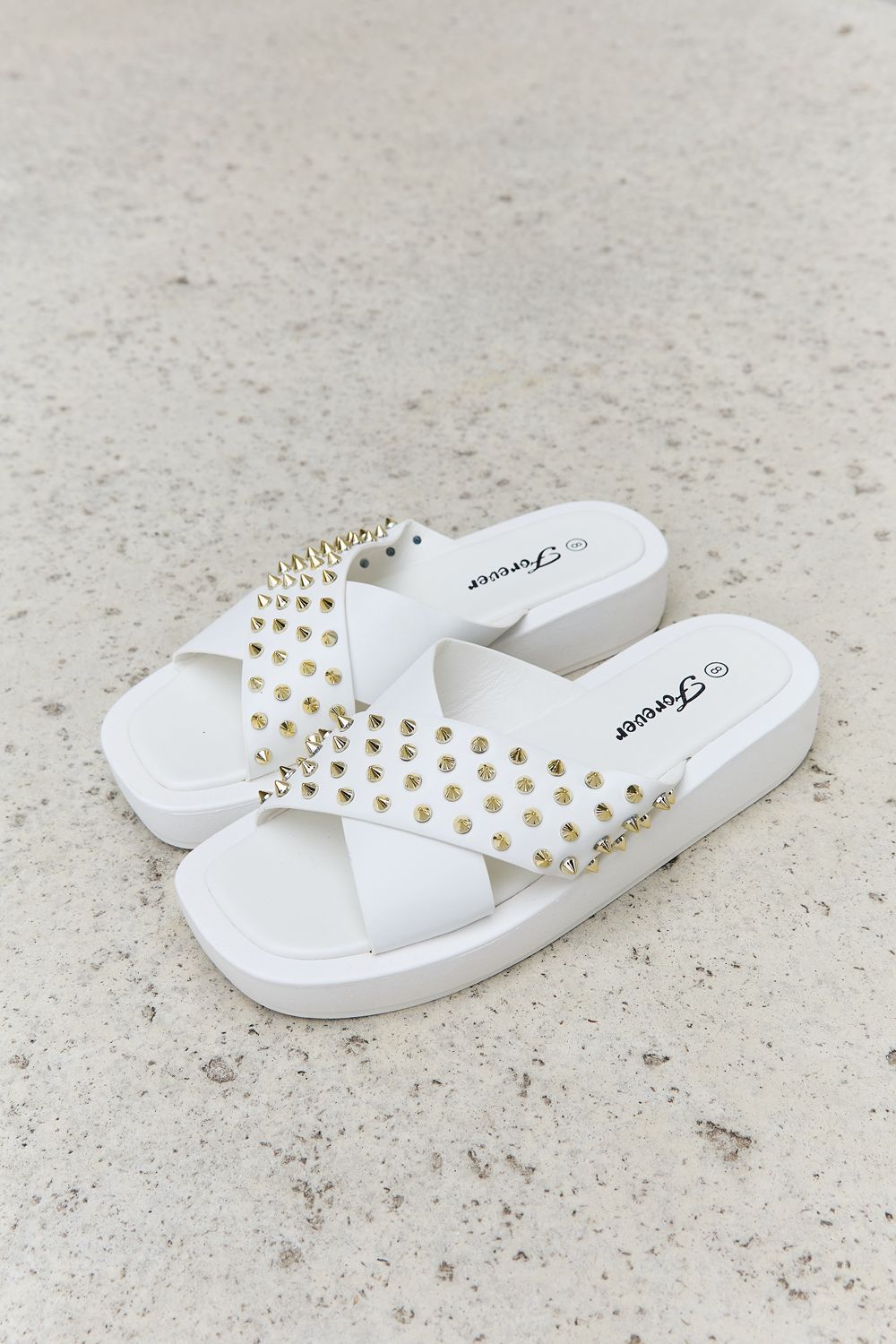 These sandals effortlessly combine fashion and functionality, making them a must-have addition to your shoe collection. The defining feature of these sandals is the cross strap design, which not only adds an elegant touch but also ensures a secure and comfortable fit. The straps are expertly adorned with stunning studs, adding a hint of edginess and a touch of sophistication to your ensemble. Whether you're heading to a casual outing or a more formal event, these sandals will elevate any look with their eye-catching style.
