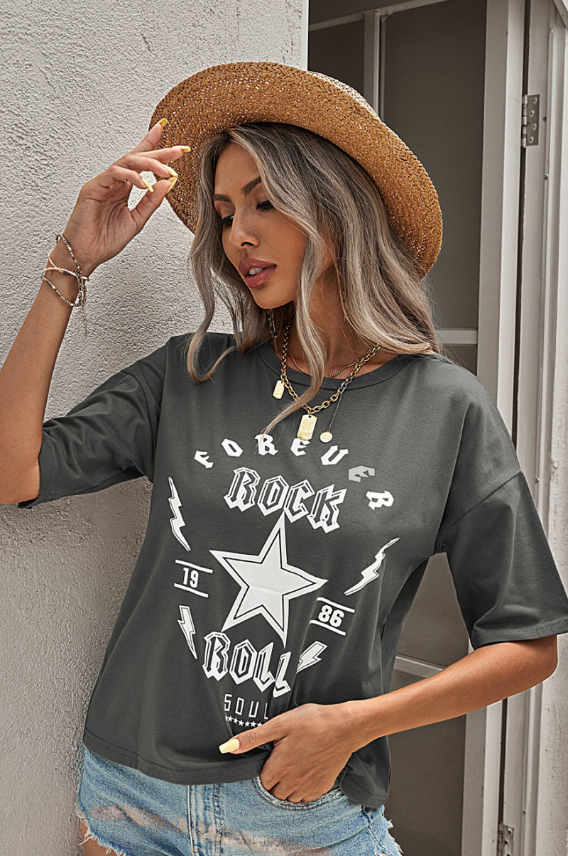 You can pair it with leggings, jeans, or skirts to get a chic look. This crop top for ladies with short sleeves and graphic print.