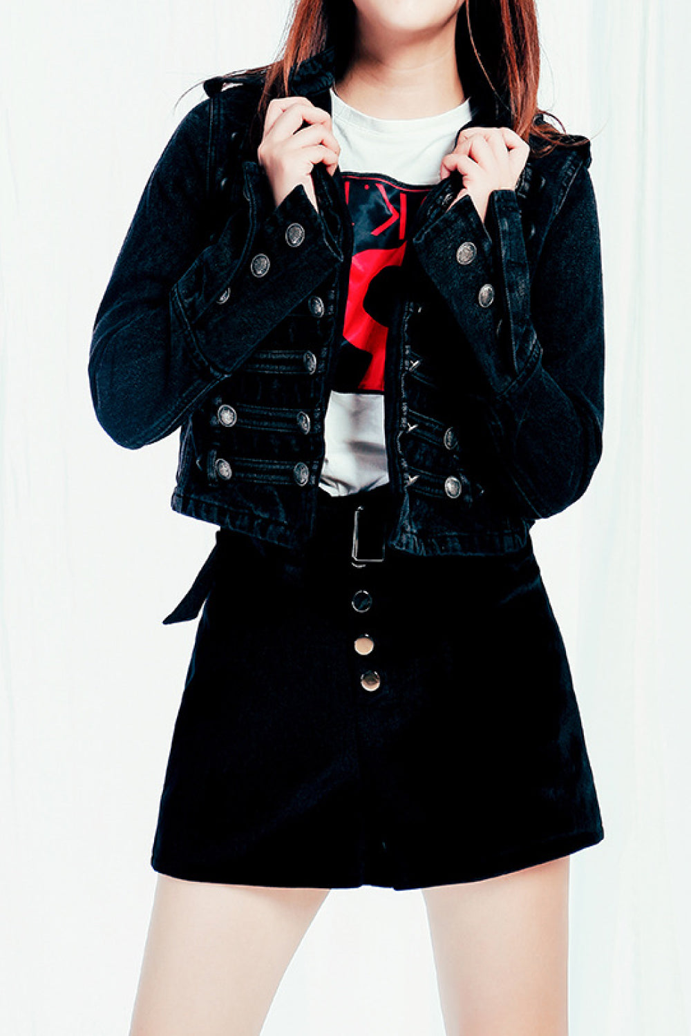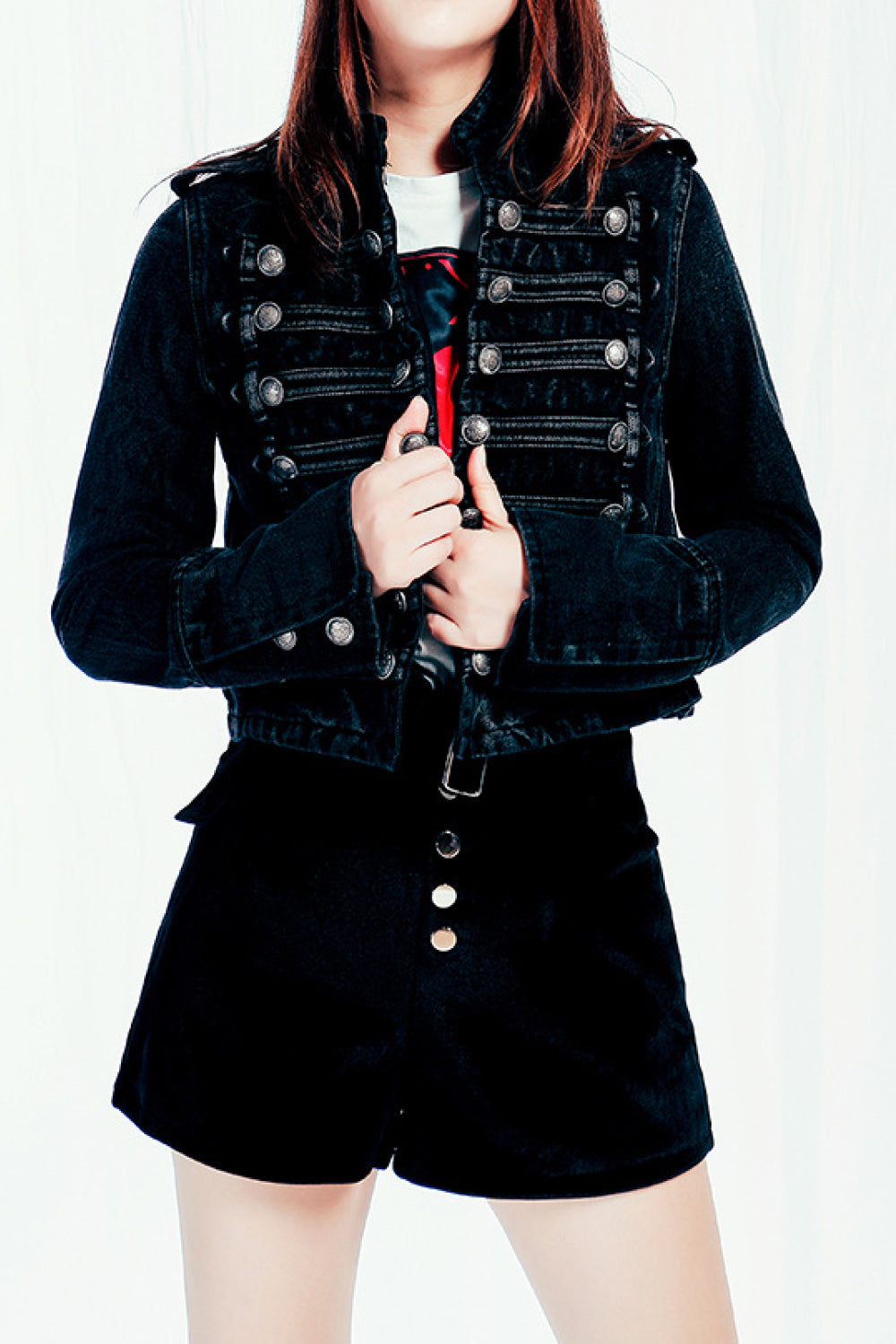 • Load image into Gallery viewer, GAWQO Button Detail Military Denim Jacket
