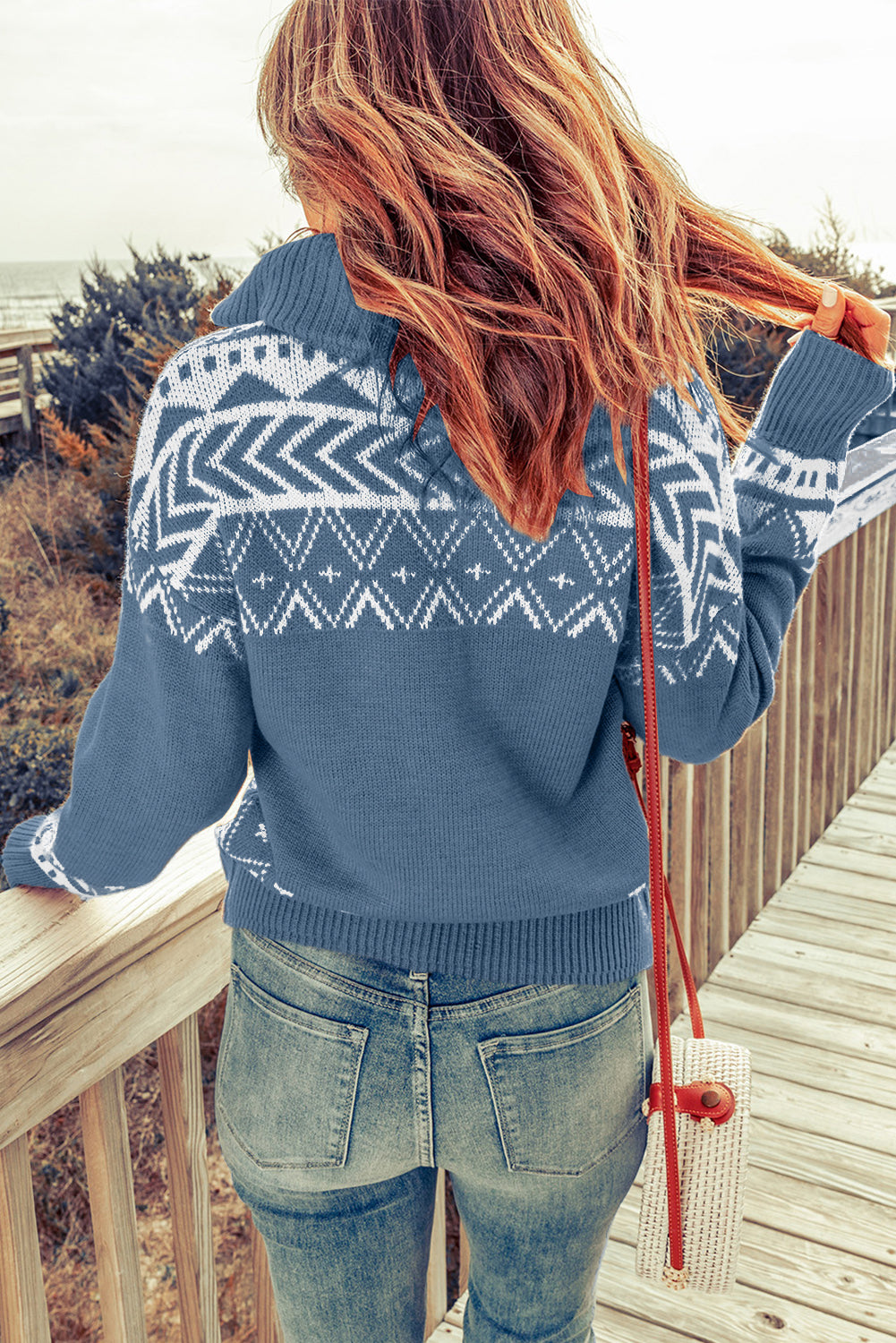 • Load image into Gallery viewer, Geometric Ribbed Trim Quarter Zip Sweater