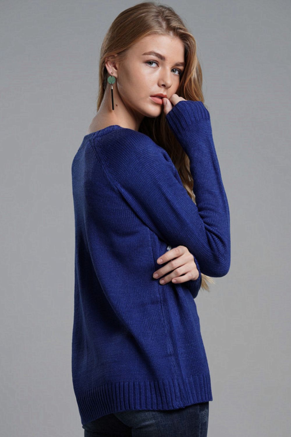 - Neckline: Round neck