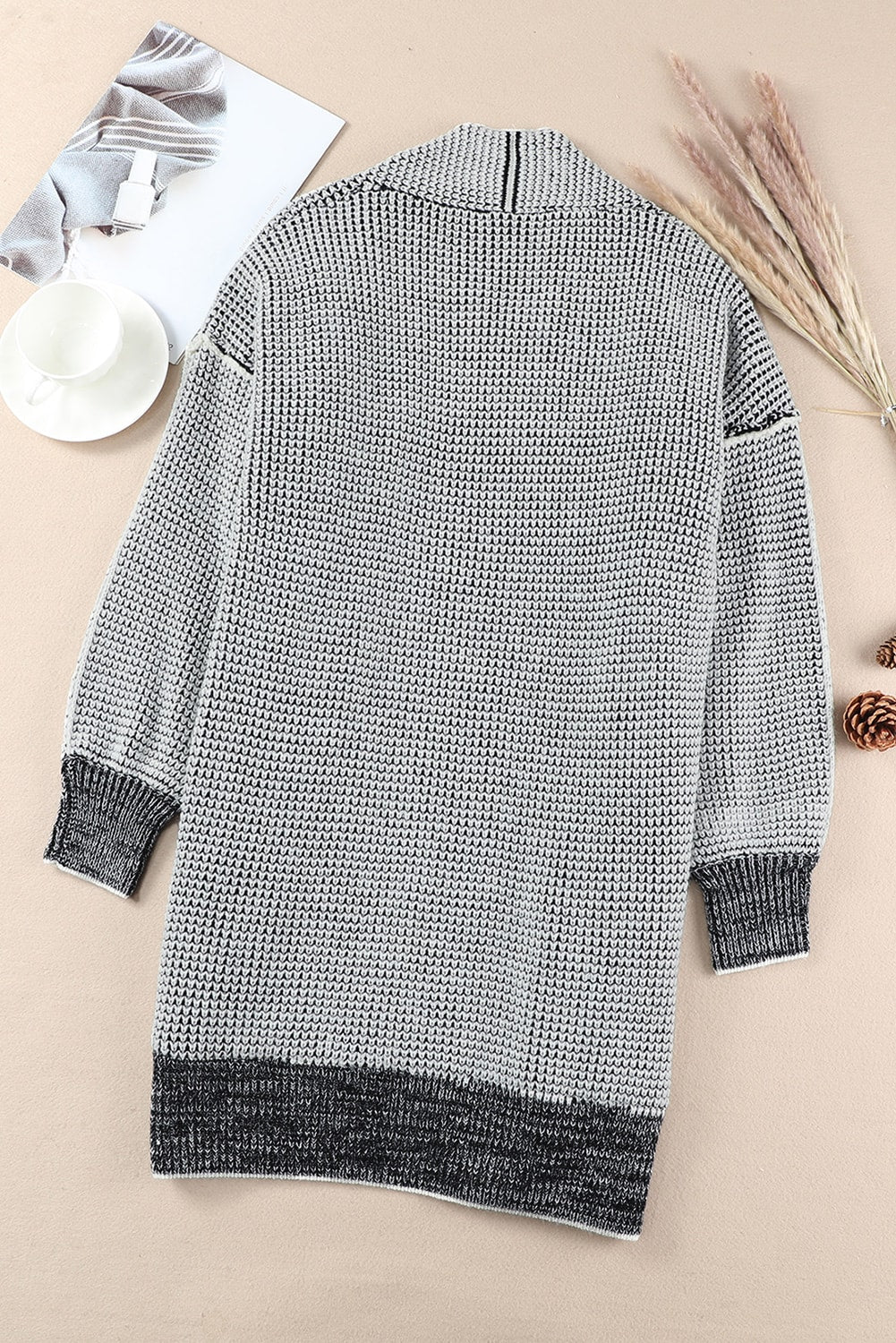 Heathered Fleece Lined Open Front Cardigan