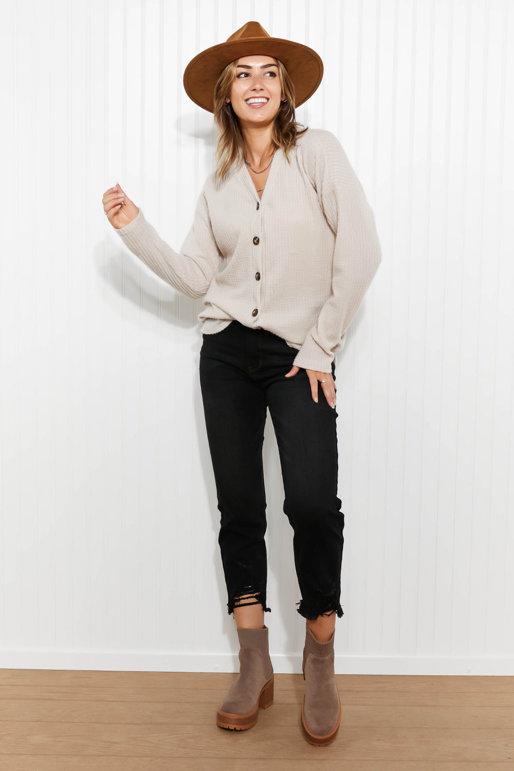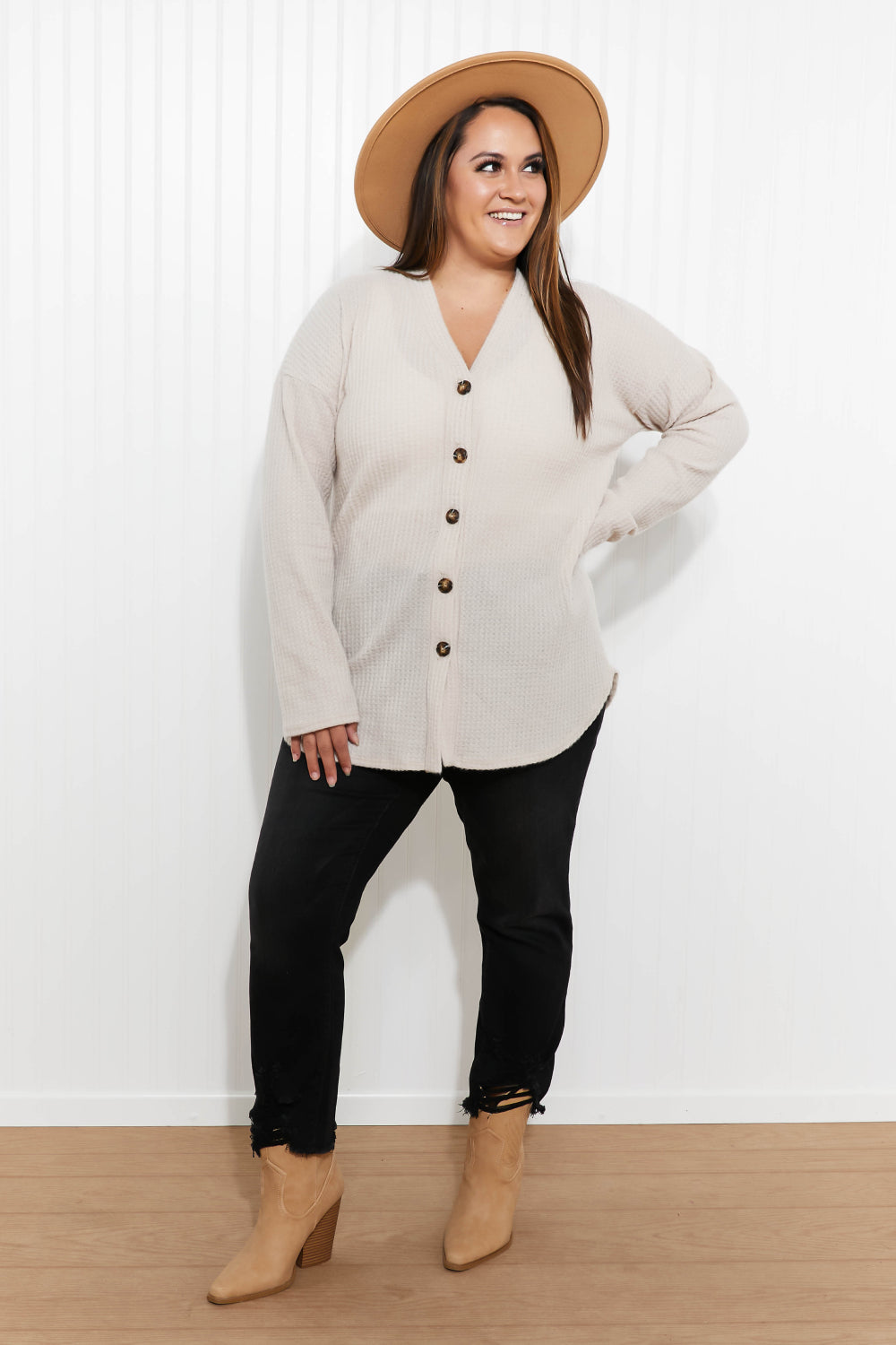 Heimish Home at Last Full Size Waffle Knit Button Down Cardigan