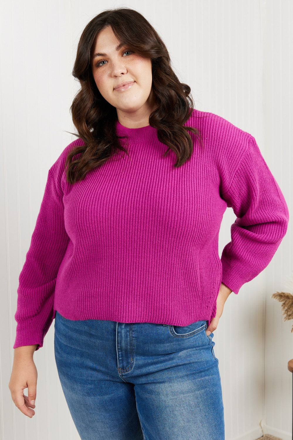 Heimish Losing Track Full Size Hem Detail Rib-Knit Sweater in Magenta