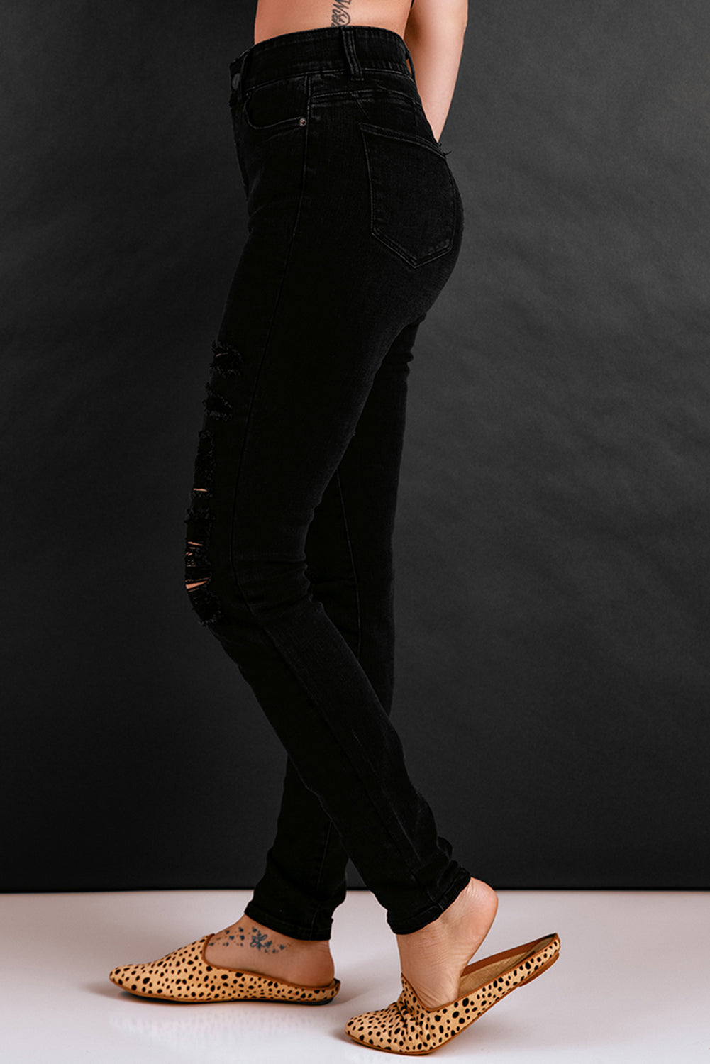• Load image into Gallery viewer, High Waist Distressed Skinny Jeans with Pockets