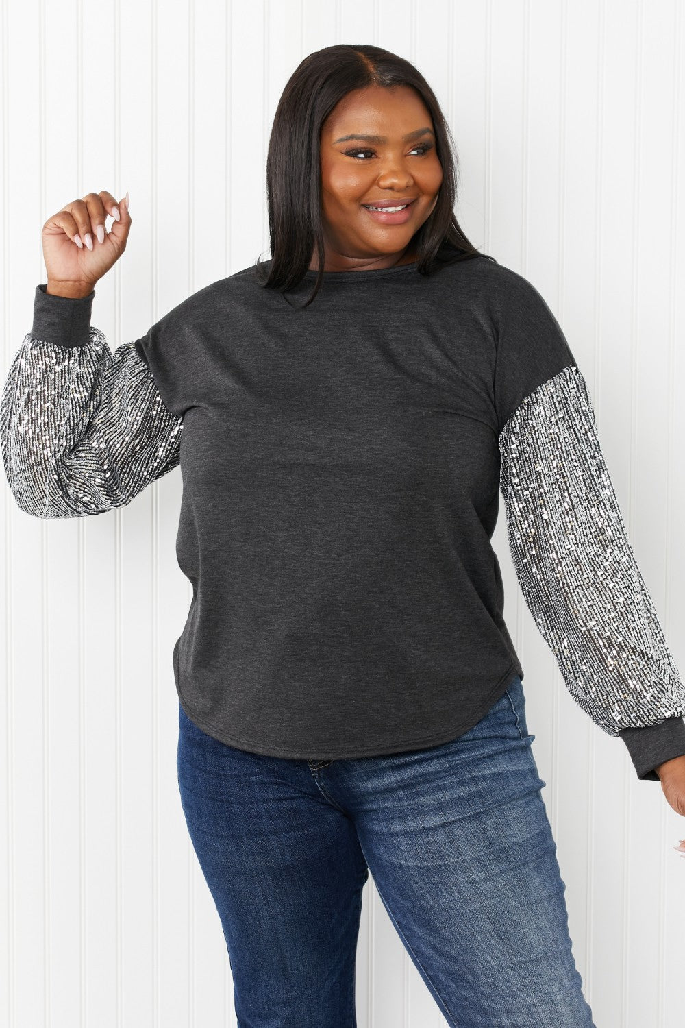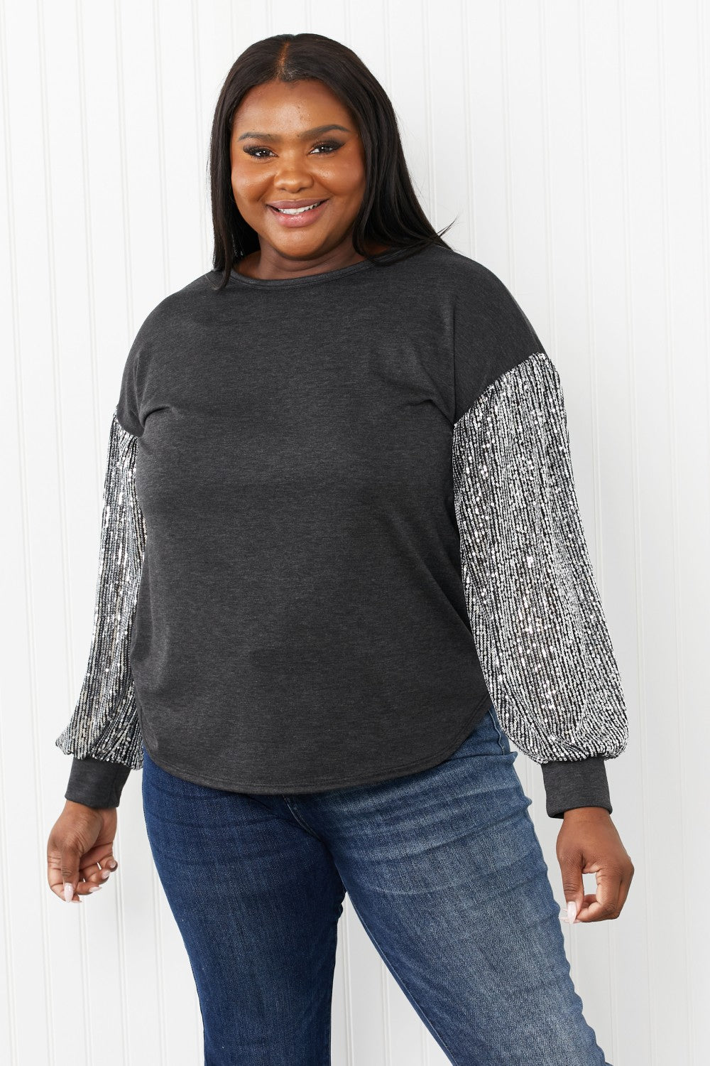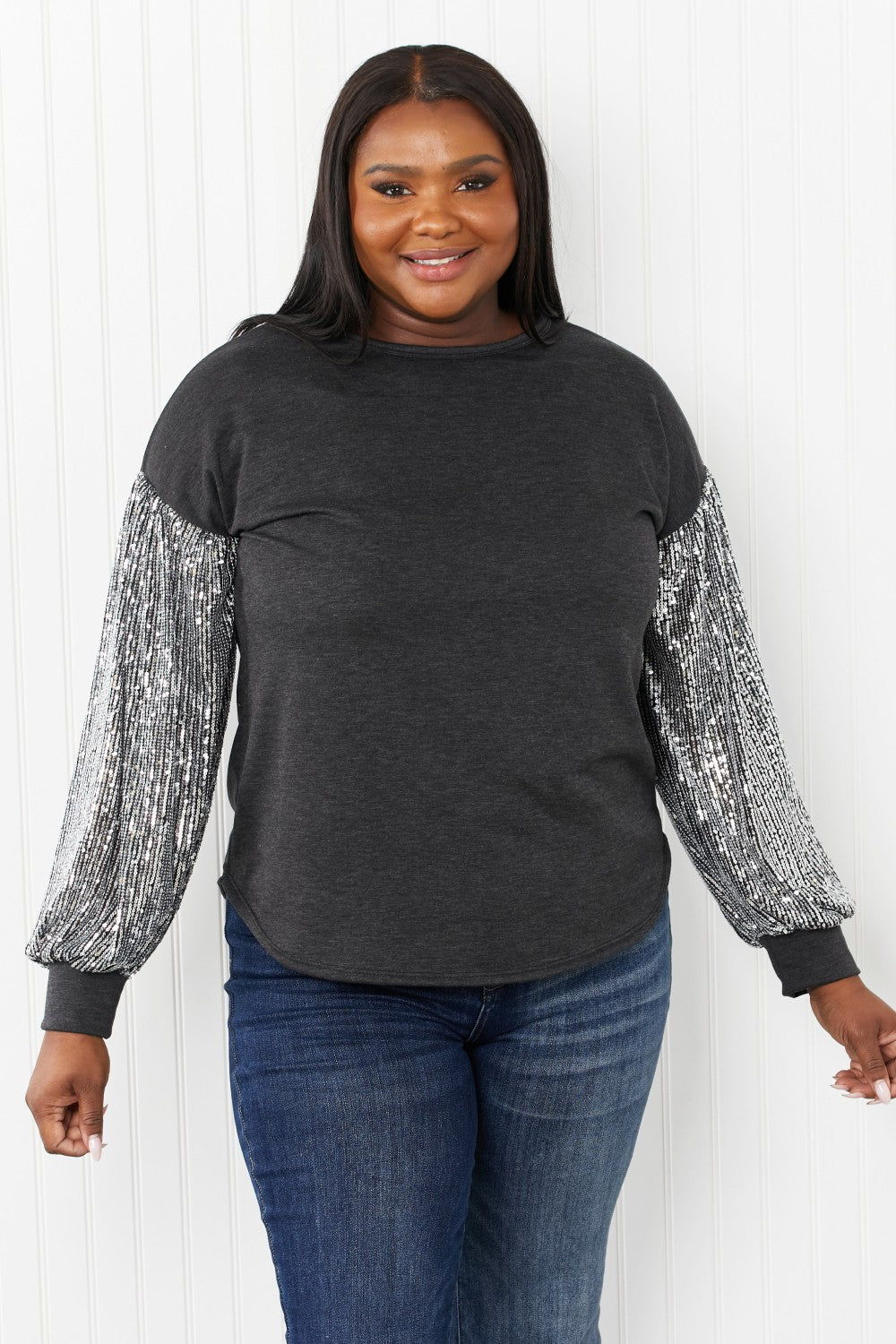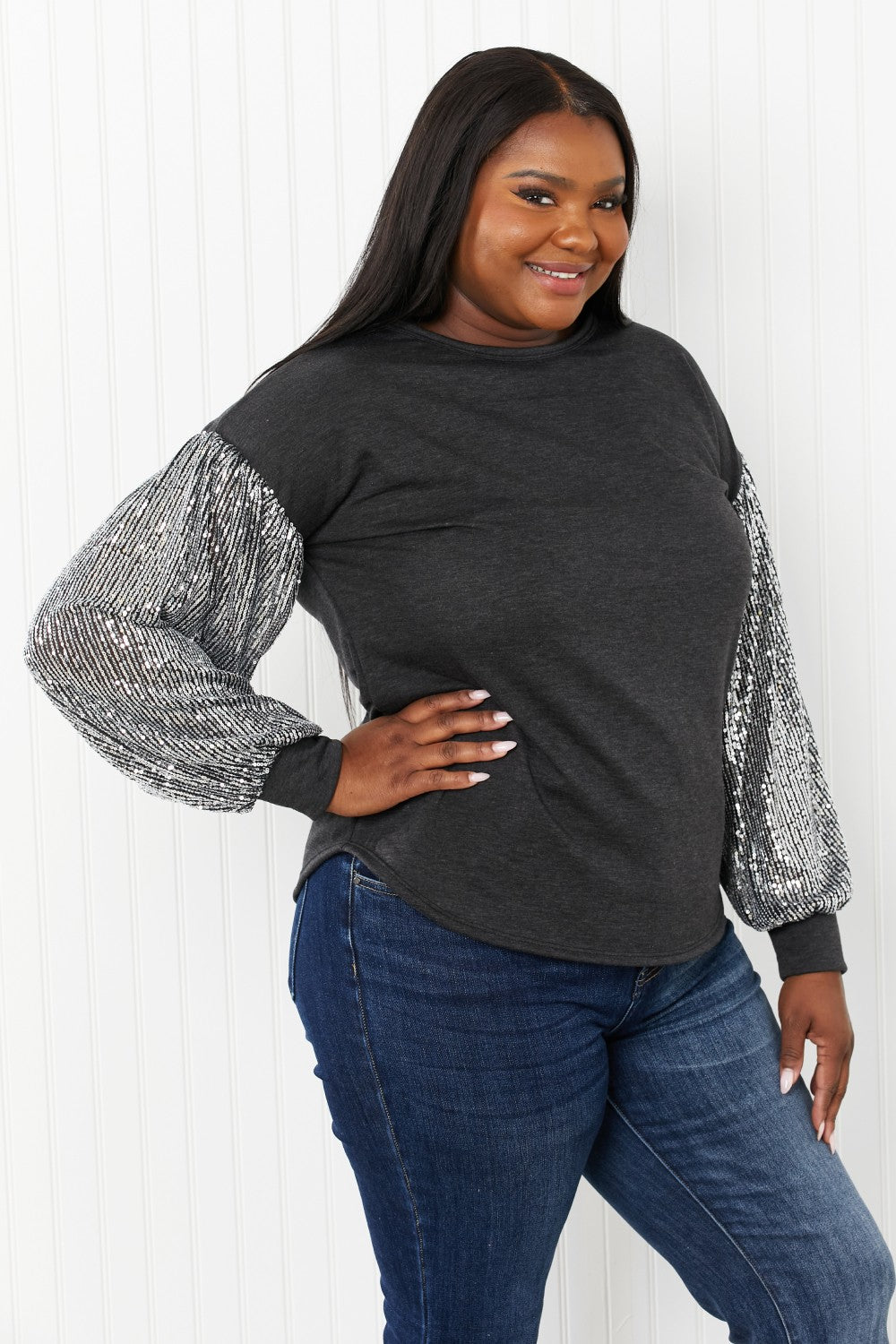 Just a touch of sparkle makes this top a show-stopper. It can be worn casually or dressed up for the upcoming holidays.