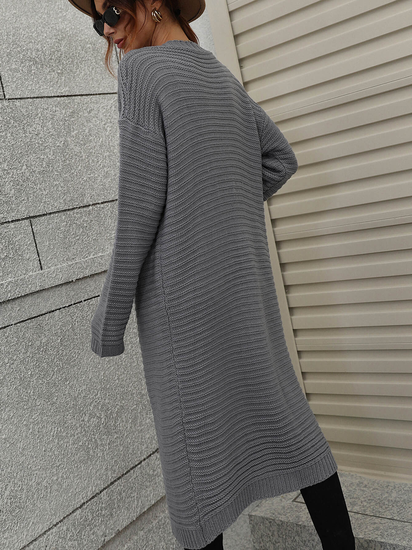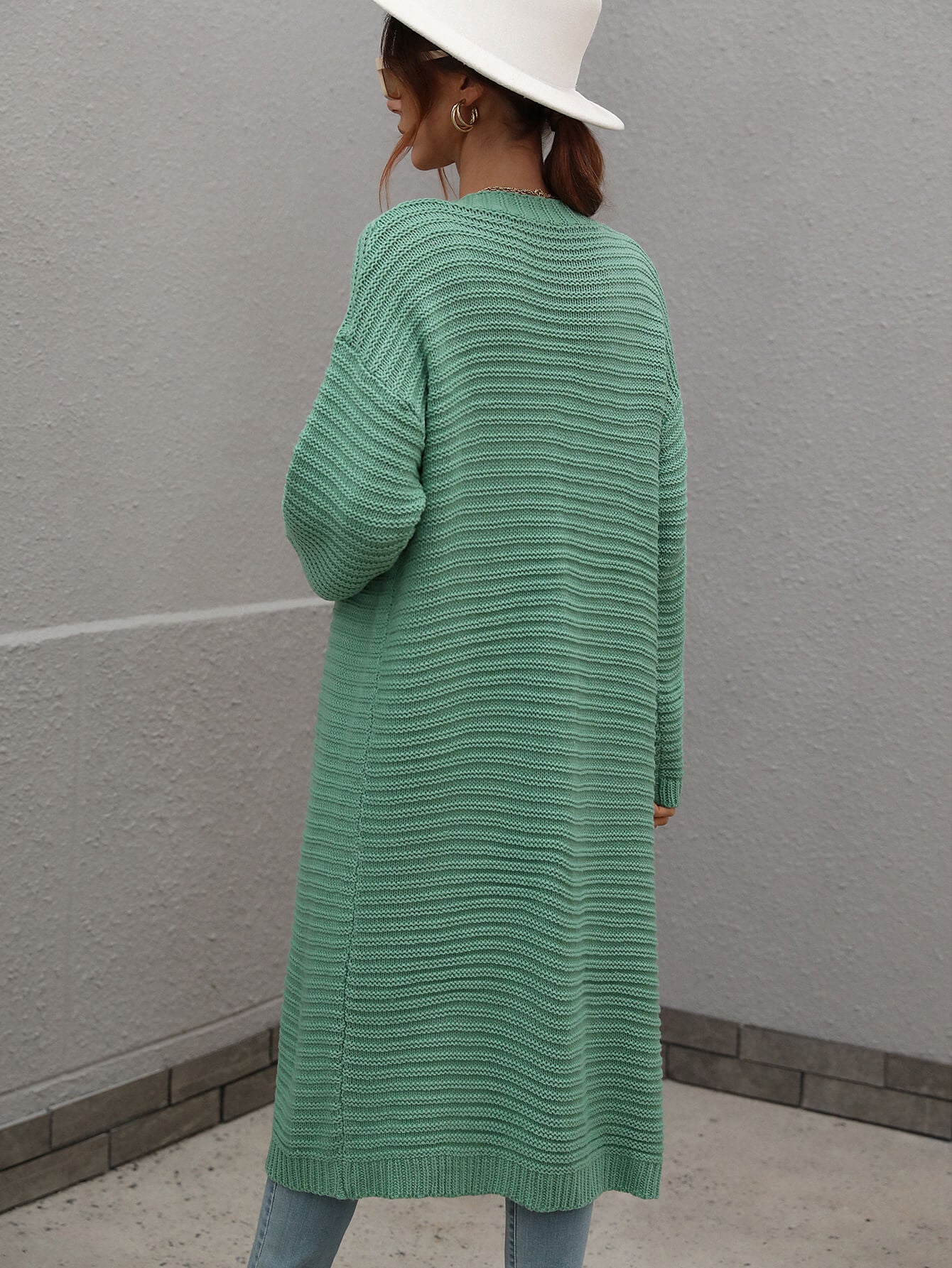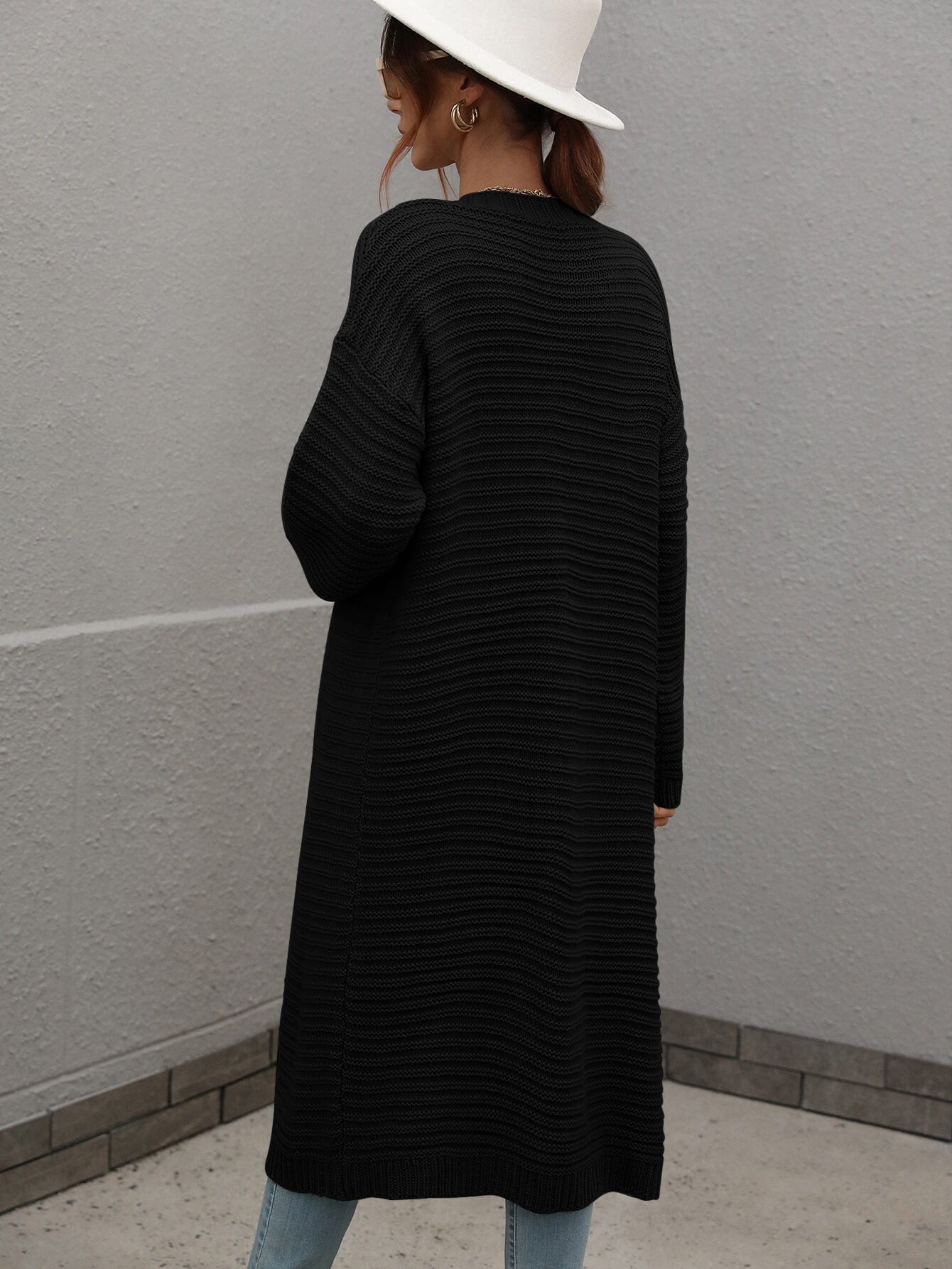 Horizontal Ribbing Dropped Shoulder Cardigan