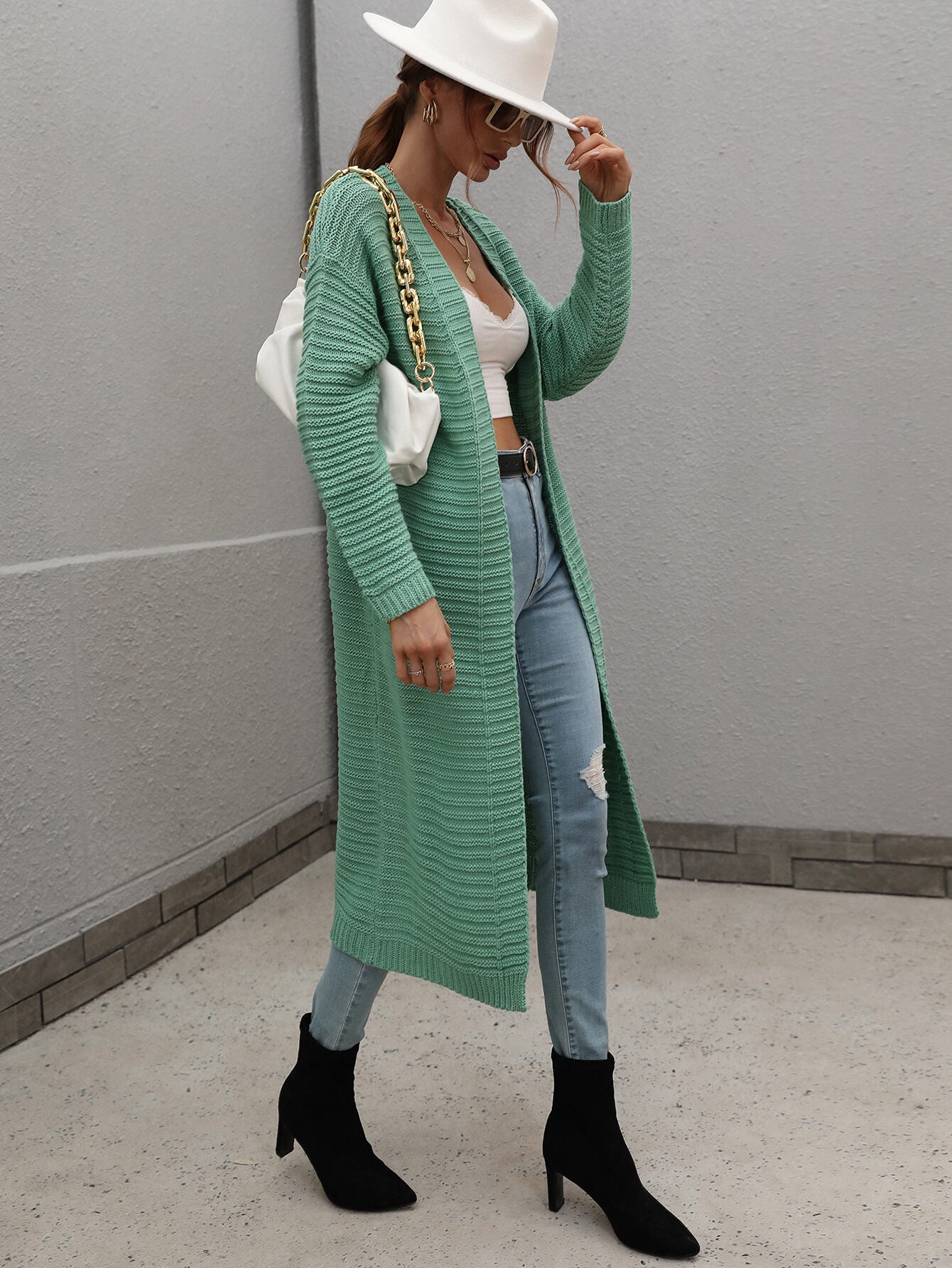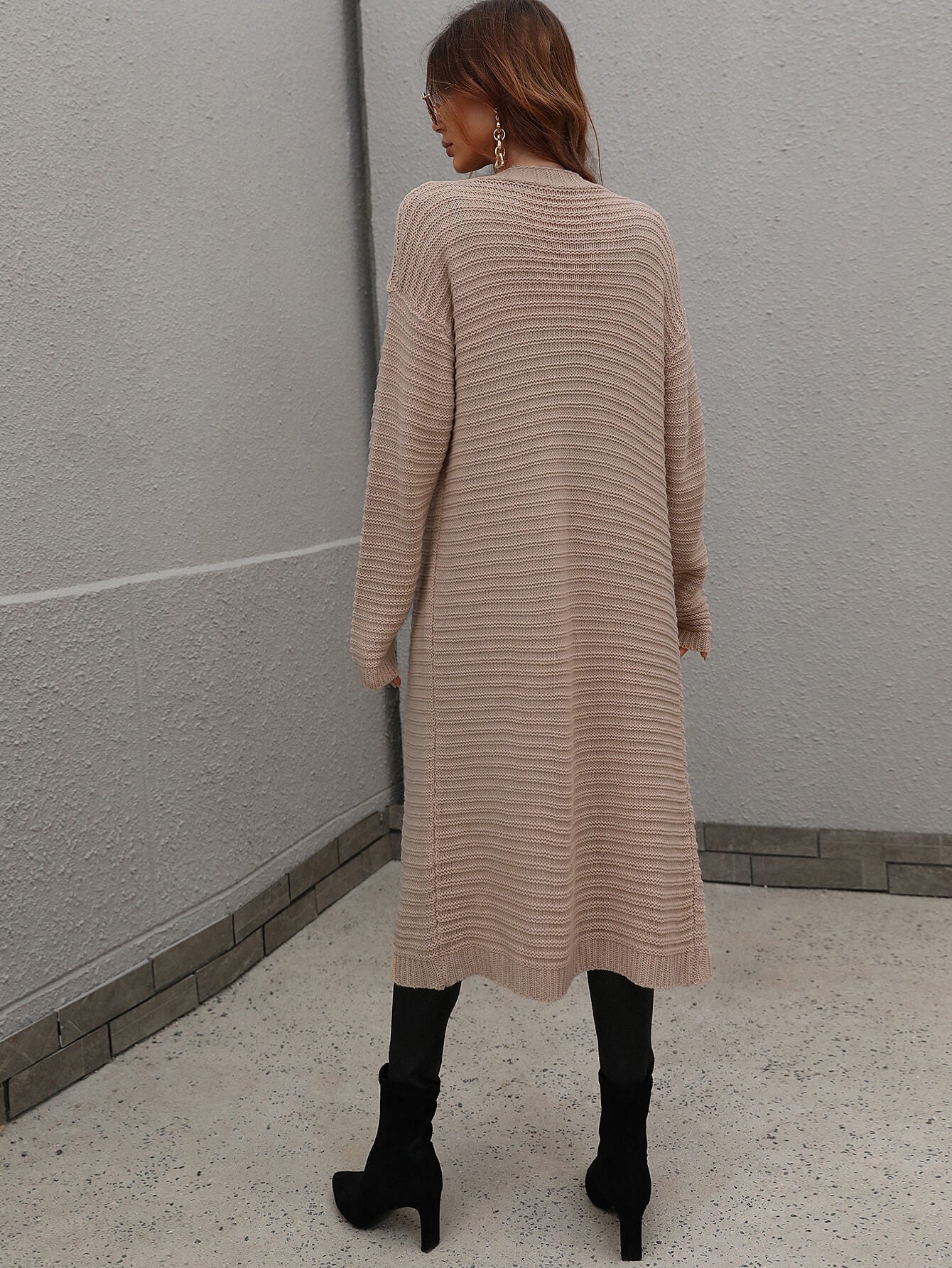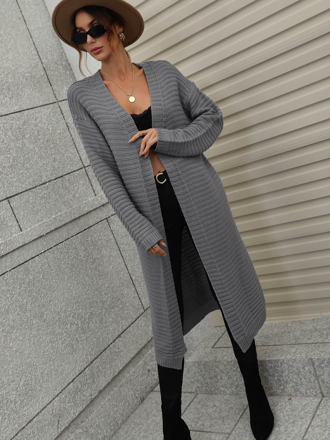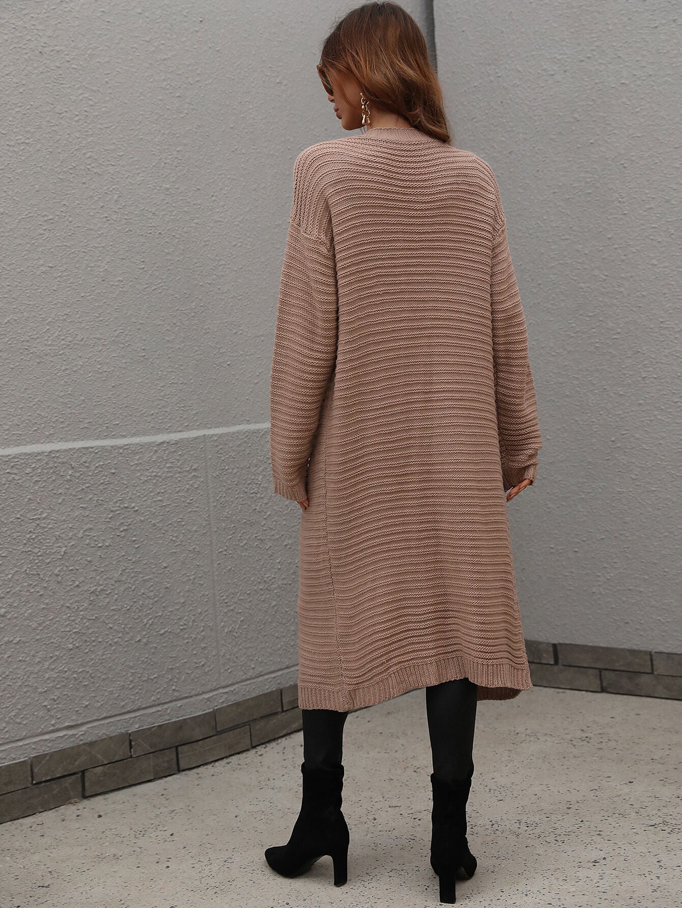Horizontal Ribbing Dropped Shoulder Cardigan