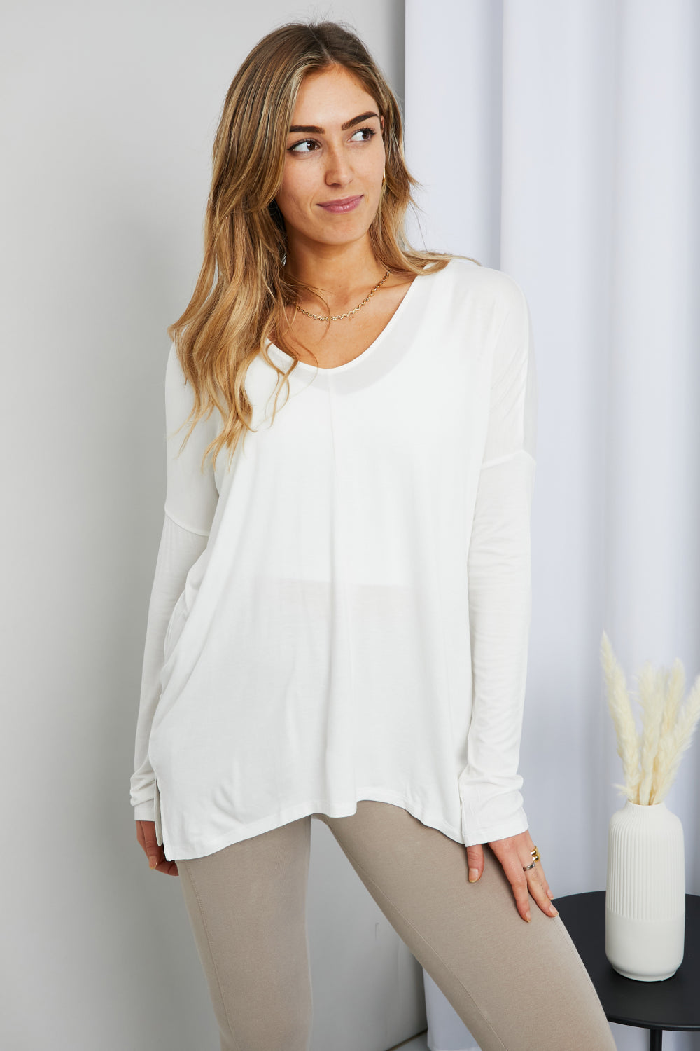 Effortlessly chic and on-trend, this side slit V-neck long sleeve top is chic and ultra-comfortable. We love this top with blue jeans or pencil skirts.