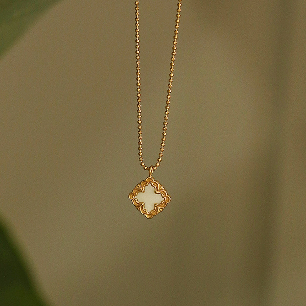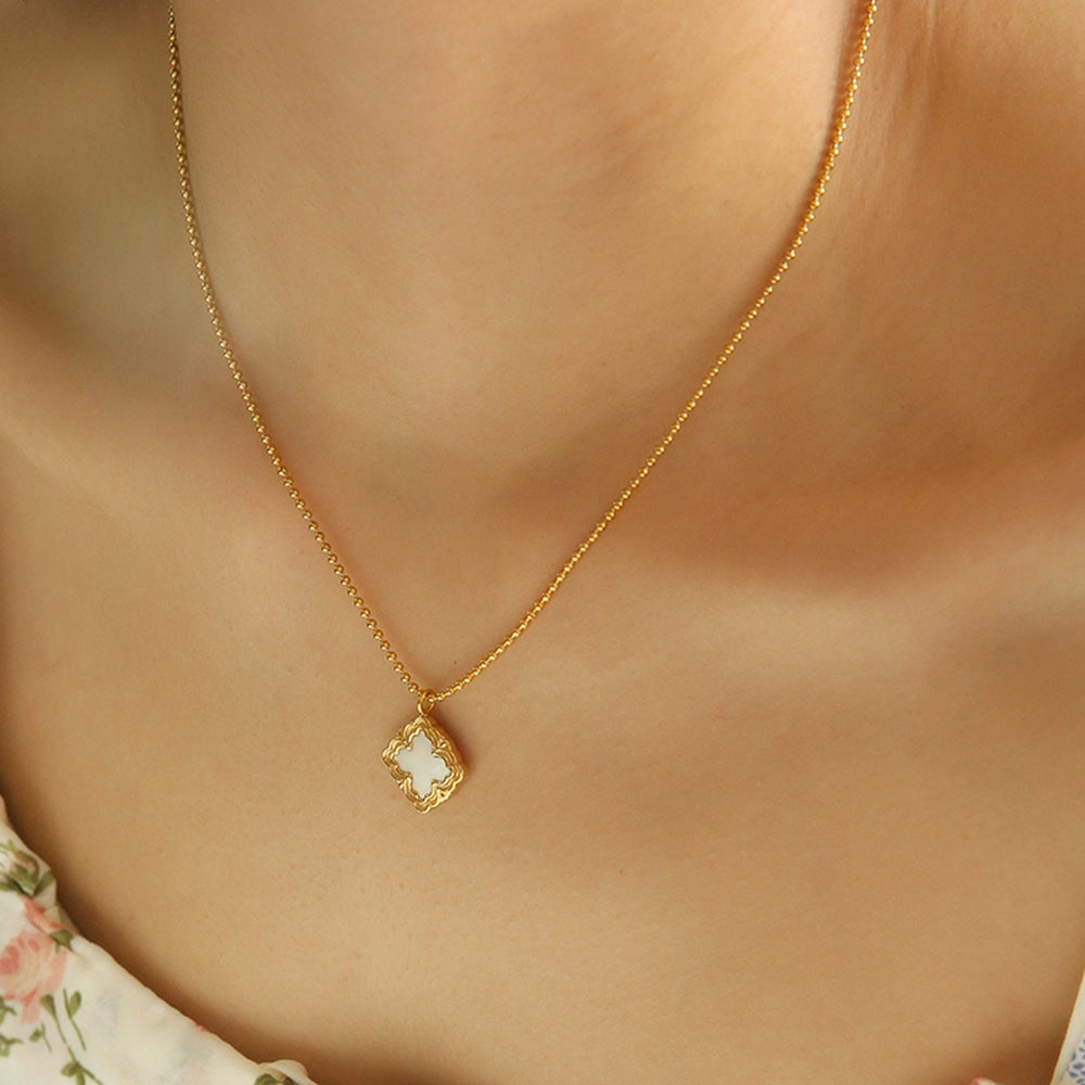 With its simple design and shell inlay, this pendant necklace is an elegant addition for all your formal events.