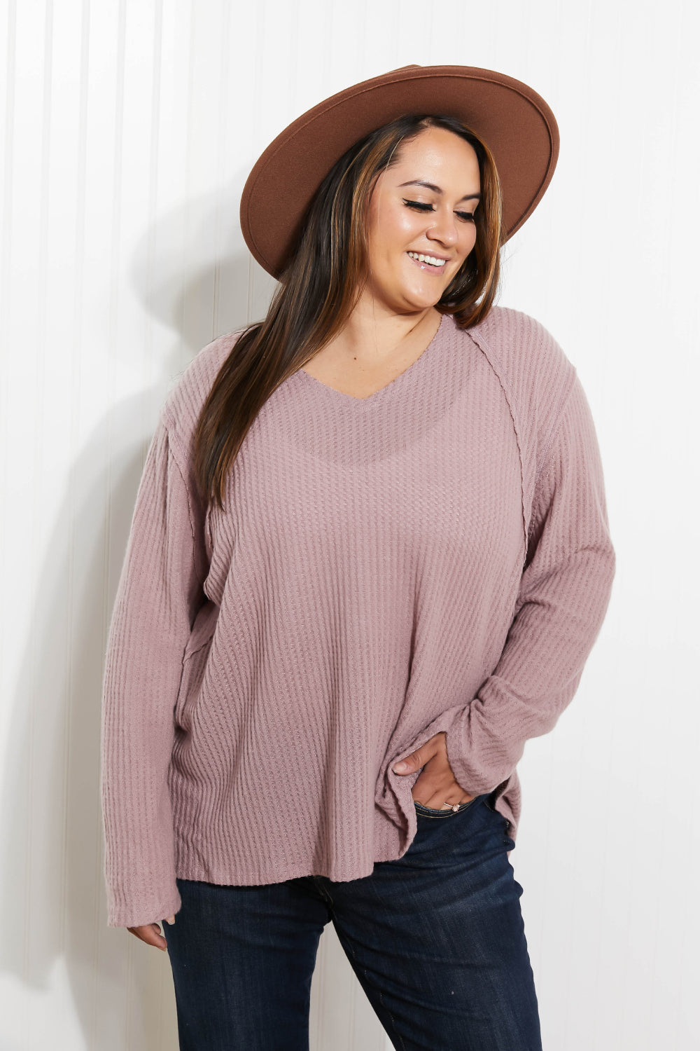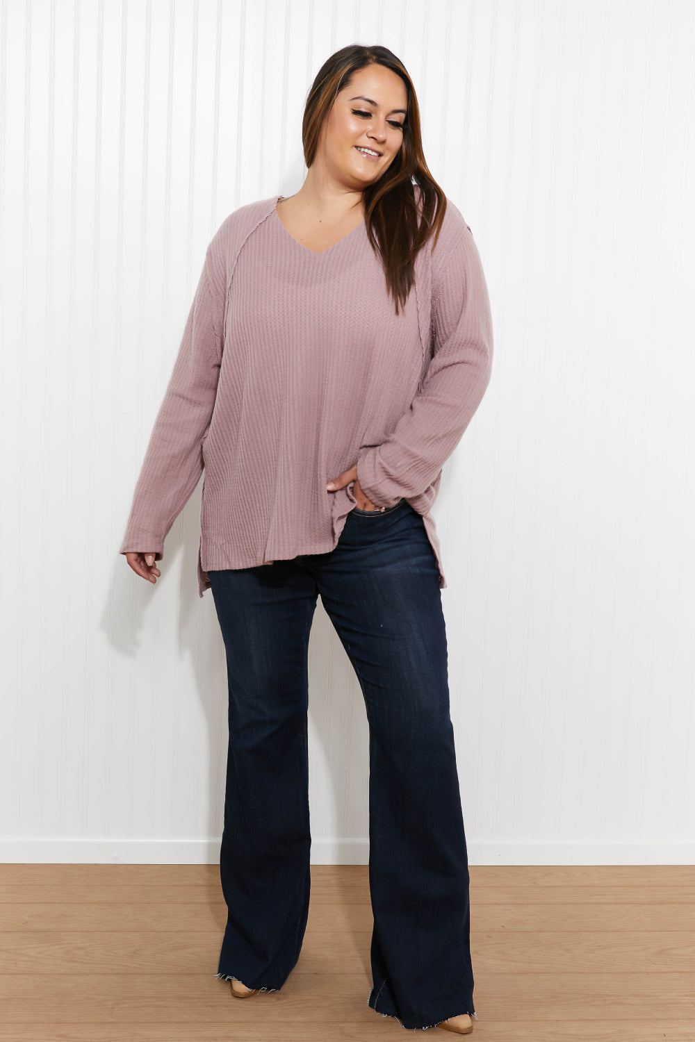 A flattering but oh so comfy top that is perfect for wearing at home or out and about and comes in a variety of colors and a full size run? It may sound hard to find, but we've got you covered with our Stay Awhile Full Size Run Waffle Knit Tee from Jodifl. A split high-low hem, long, raglan sleeves, and a waffle knit come together to bring you this top. The v-neck adds some shape to the otherwise boxy and oversized fit, and the side split makes it easy to do a front tuck to your favorite jeans or joggers, which will emphasize your waist. Choose your favorite color or get them all!