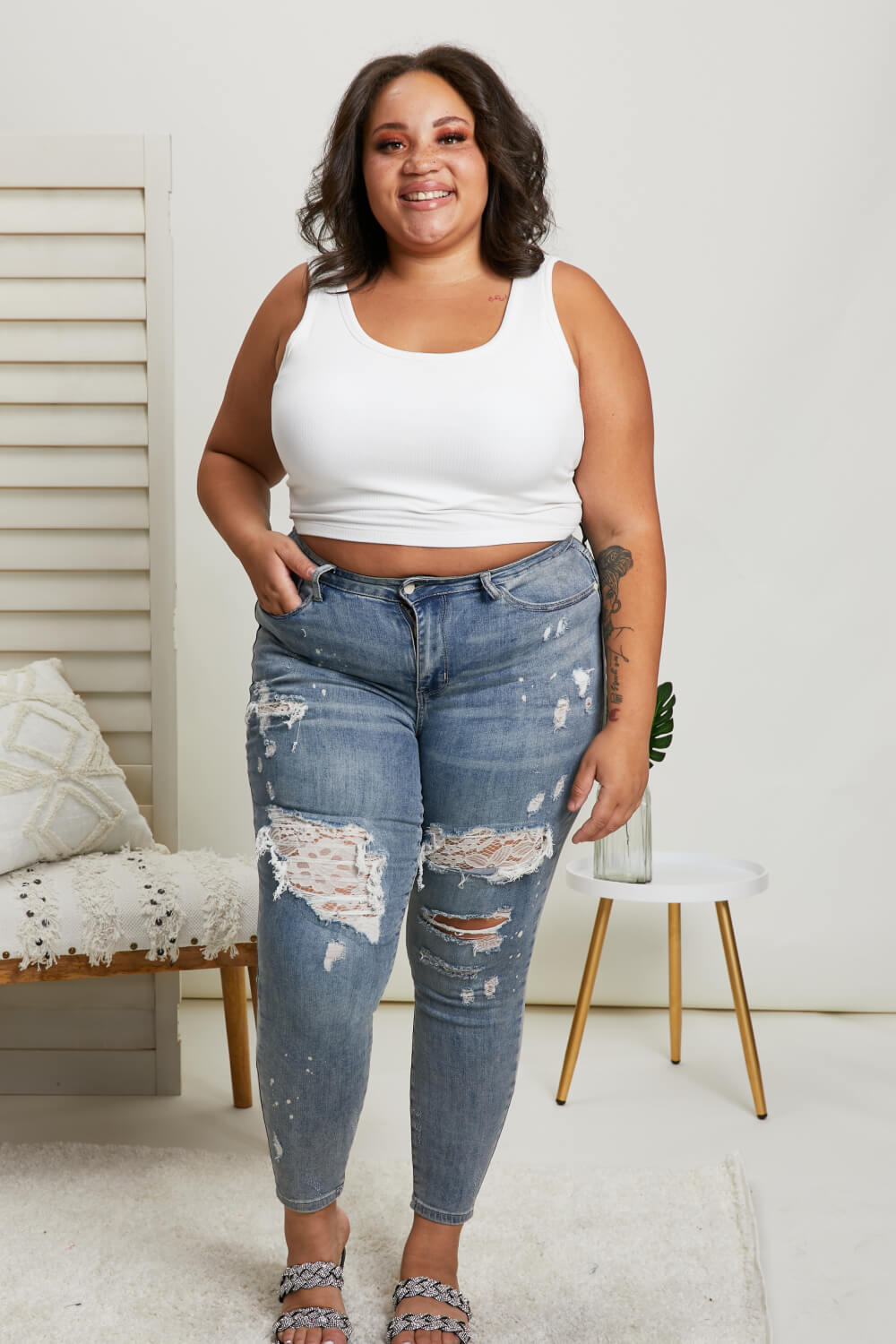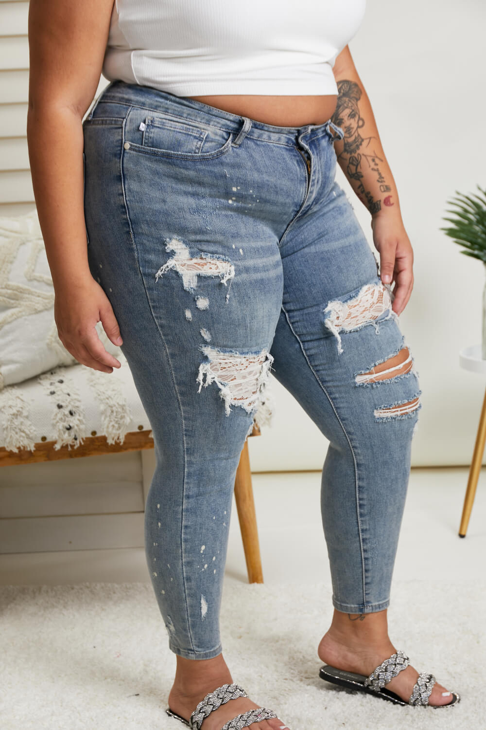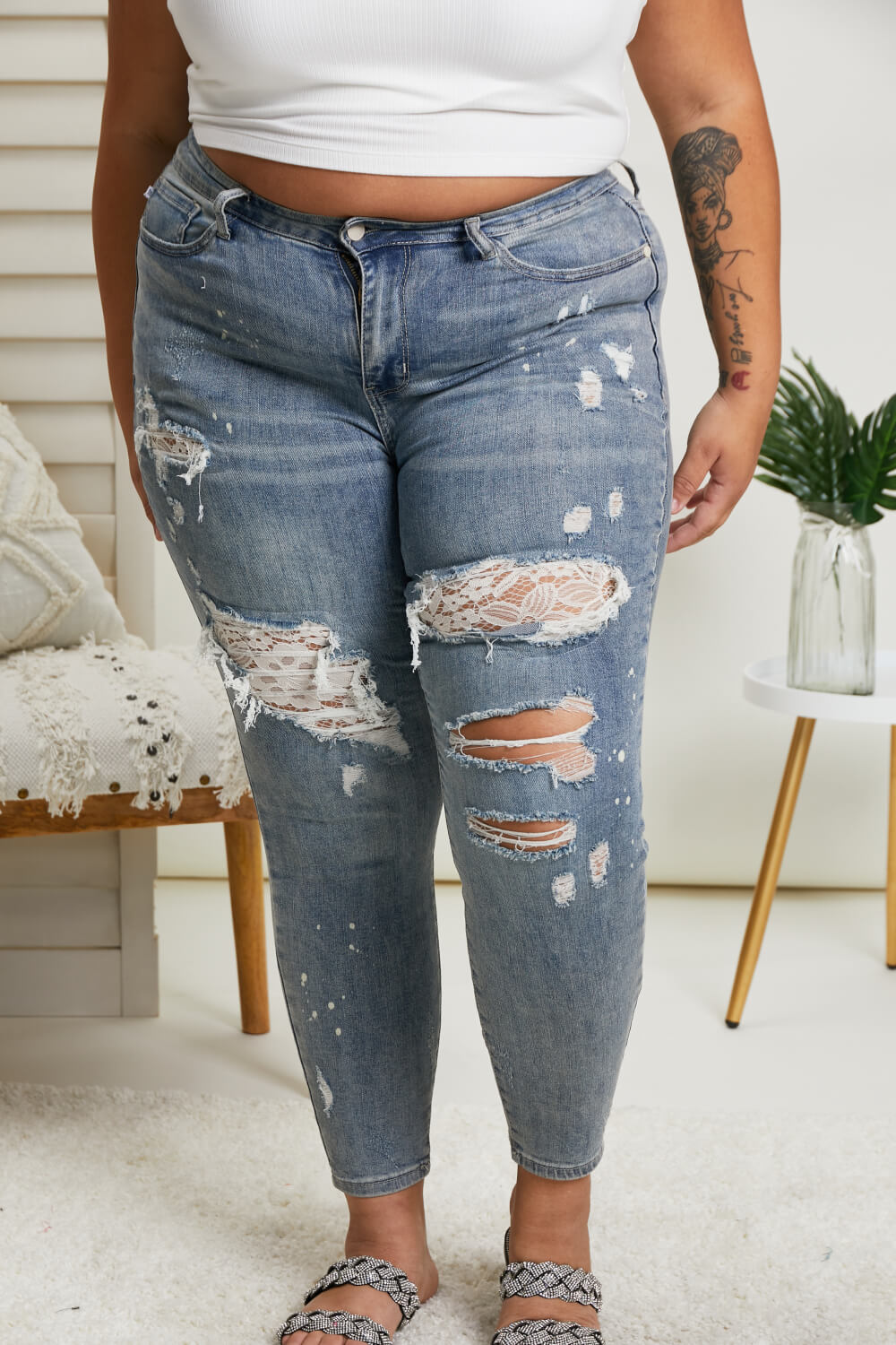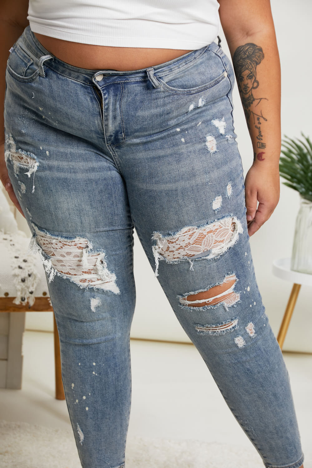 For denim as unique as you are, try these lace patch skinny jeans! With just the right amount of sweet and spice, these jeans are sure to make your denim collection complete.
