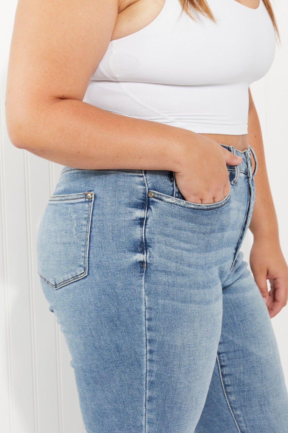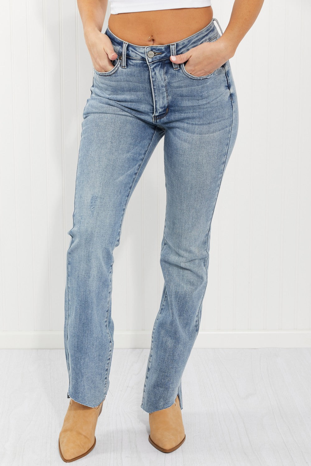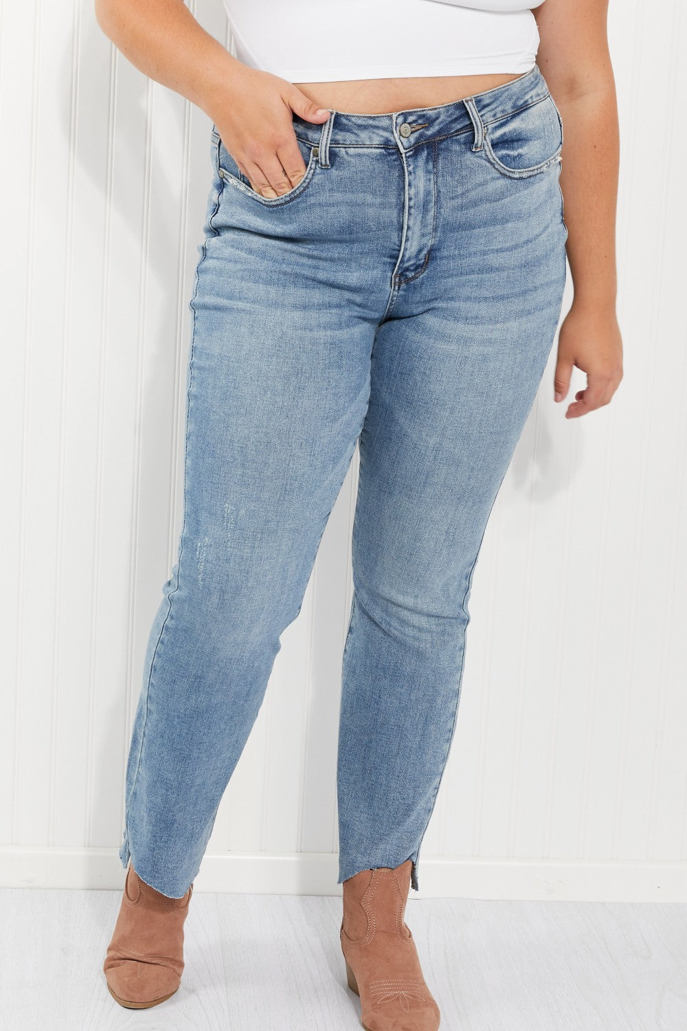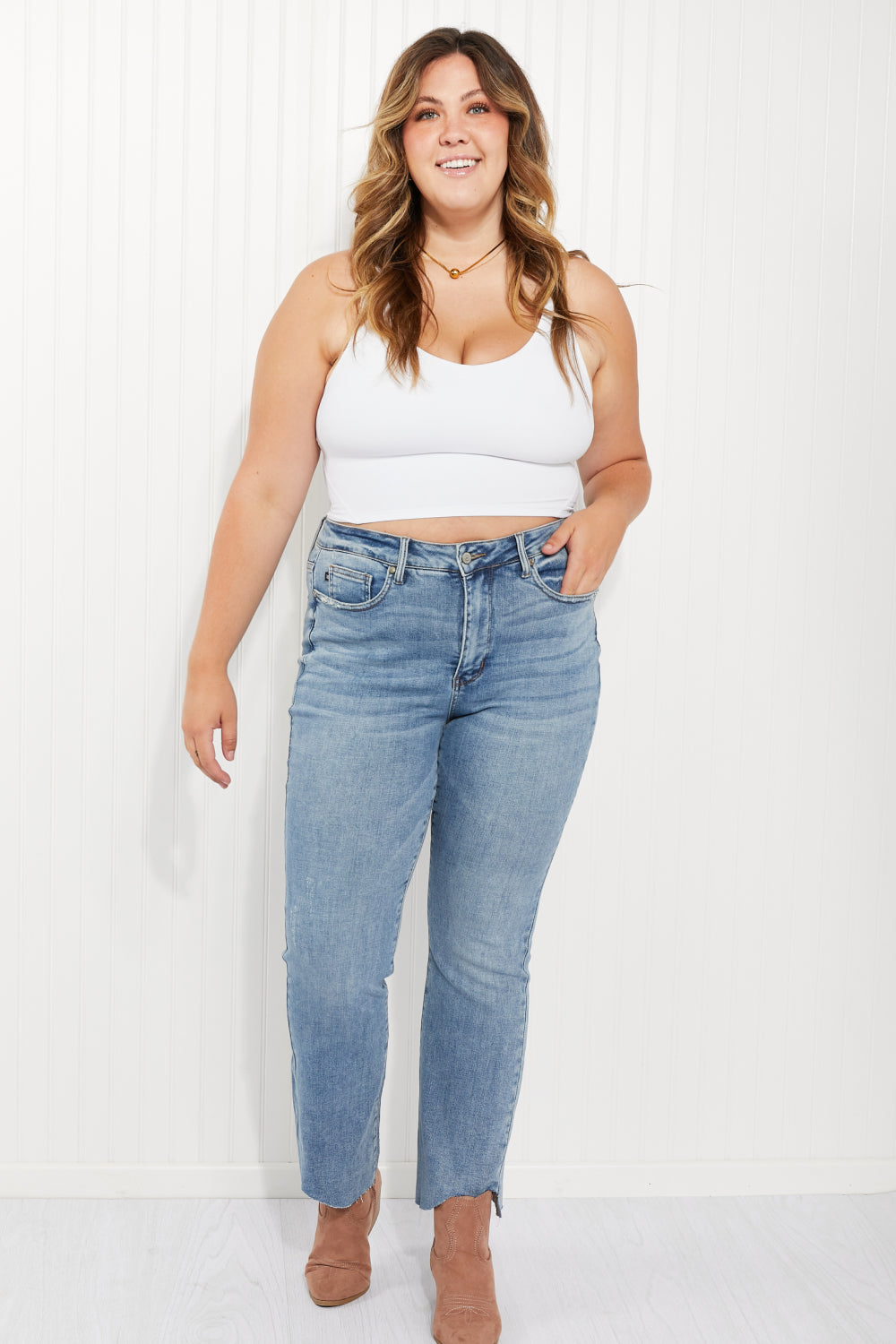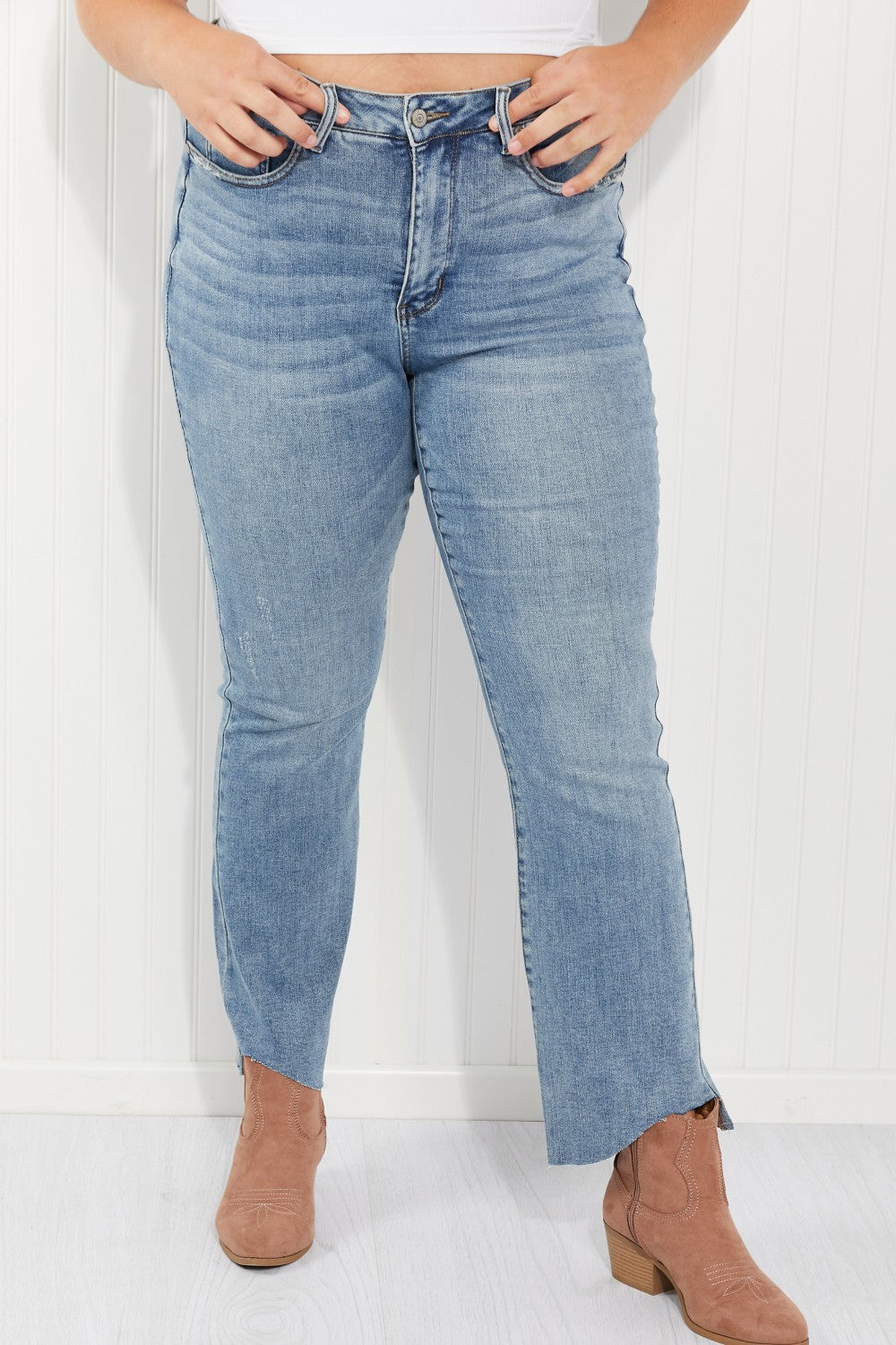 Judy Blue Mia Full Size Raw Hem Slim Bootcut Jeans
