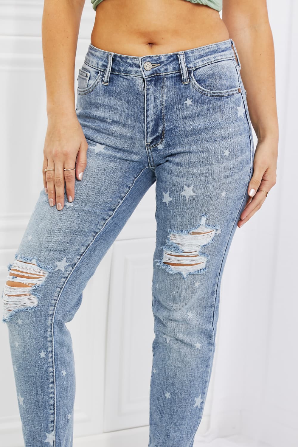 Judy Blue Sarah Full Size Star Pattern Boyfriend Jeans