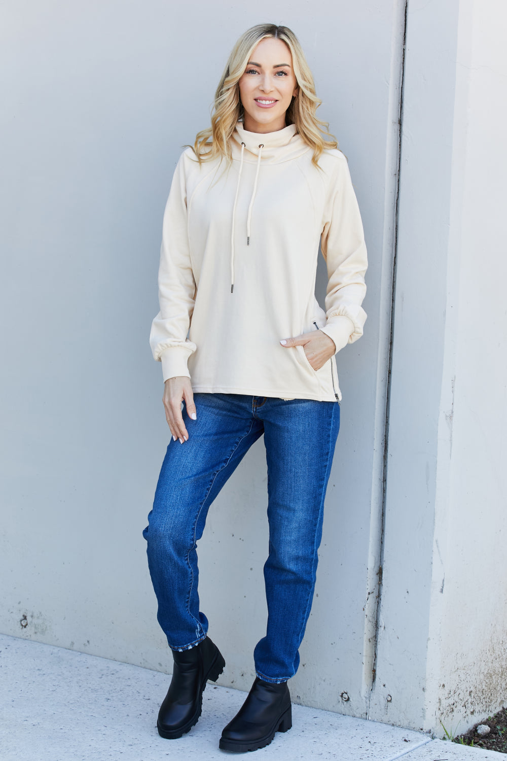 Kimberly C Drawstring High Neck Side Zipper Sweatshirt with Pockets