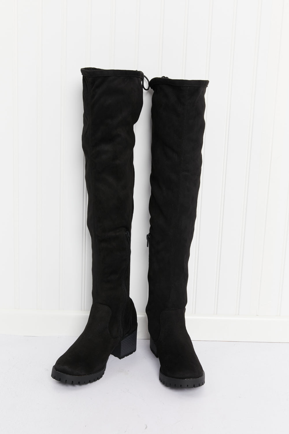 These boots are a must-have for your wardrobe this winter. They feature an over-the-knee silhouette, a zipper at the ankle, and an adjustable strap at the top. Their stretchy design allows wider calves to wear these beauties too! Pair these boots with jeans or a maxi dress for effortless beauty.
