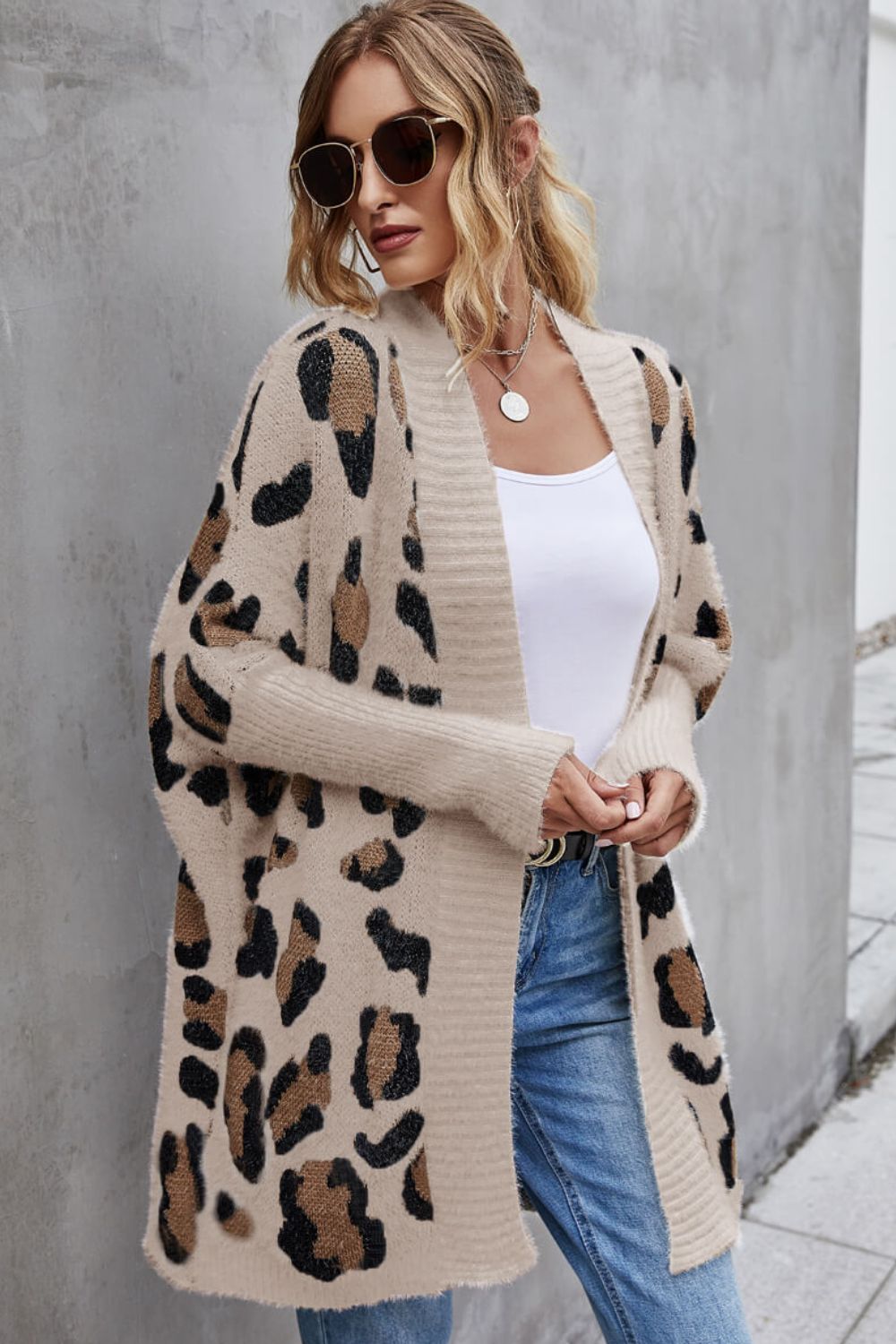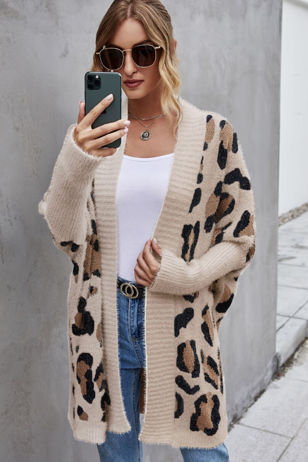 • Load image into Gallery viewer, Leopard Batwing Sleeve Open Front Cardigan