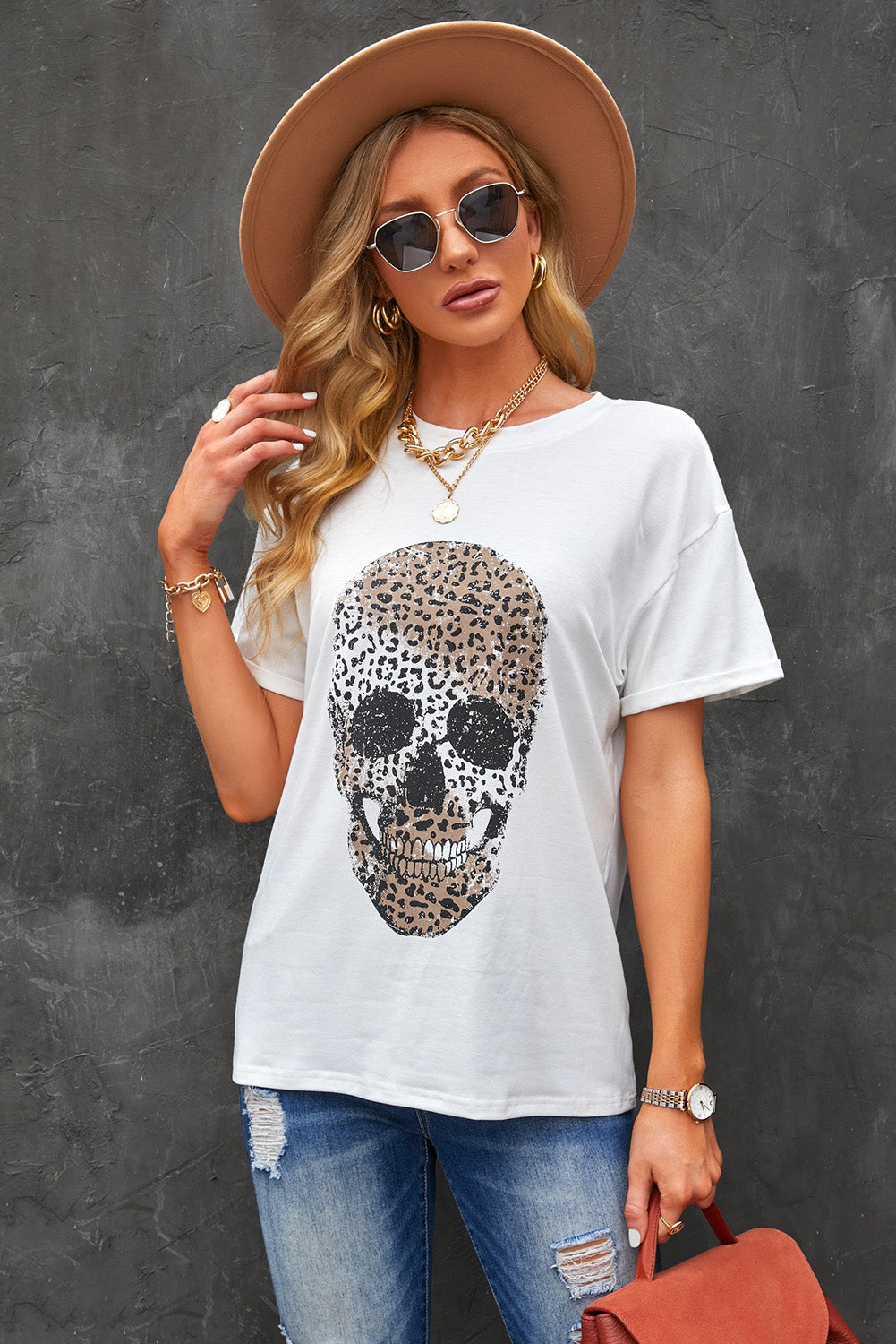 Leopard Skull Graphic Tee Shirt