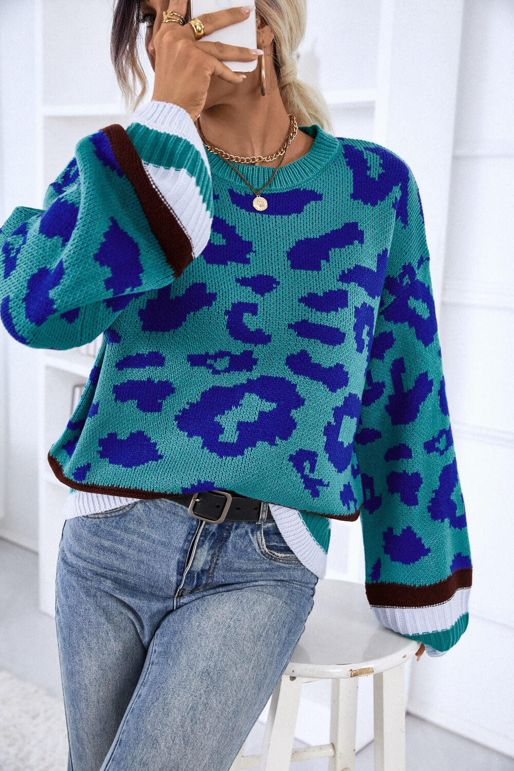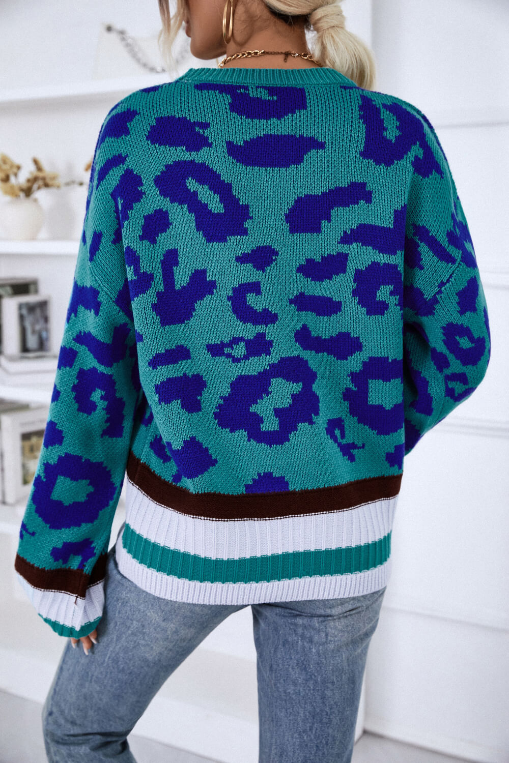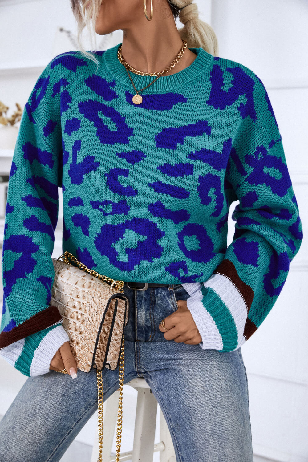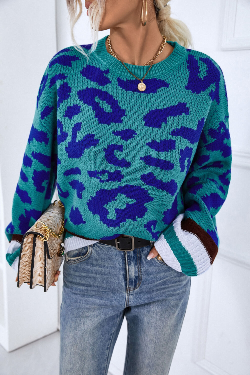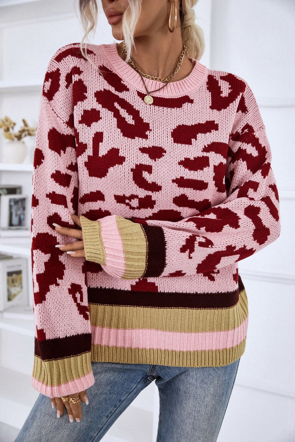 • Load image into Gallery viewer, Leopard Striped Round Neck Sweater