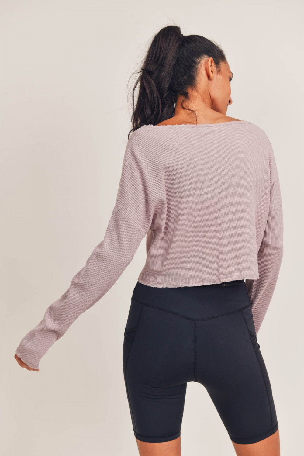 Light Waffle Knit V Detail Top In IRIS | DIBS 432
