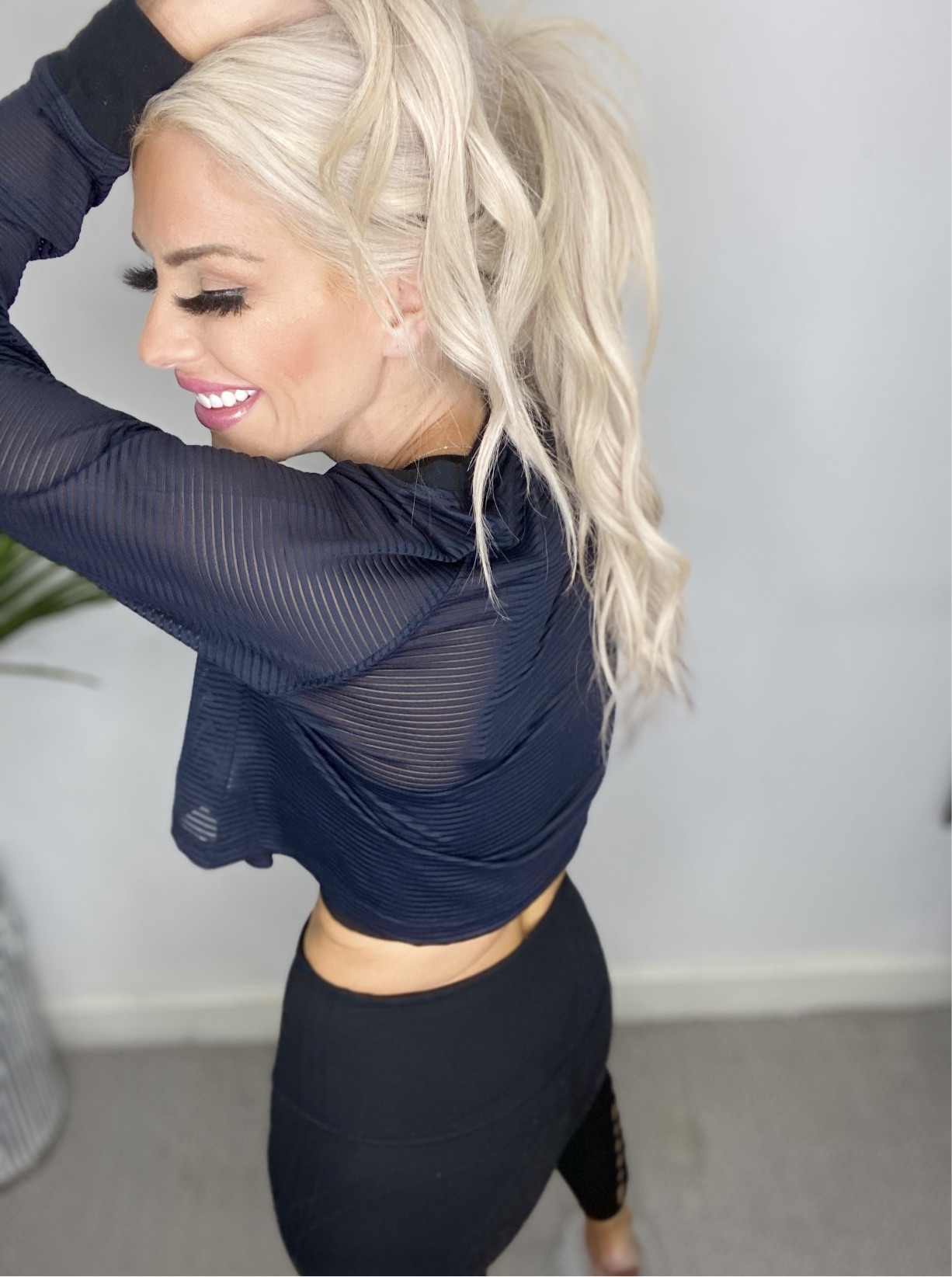 Sheer Stripe Long Sleeve Crop Top In BLACK Mono B | DIBS 308
