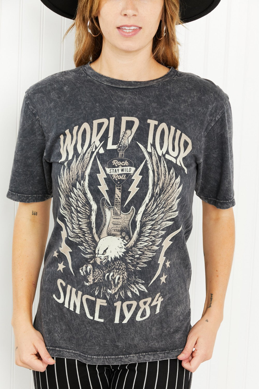 This mineral washed graphic tee is perfect for adding some edge to your look! Crafted with 100% cotton, you'll stay comfortable all day long!