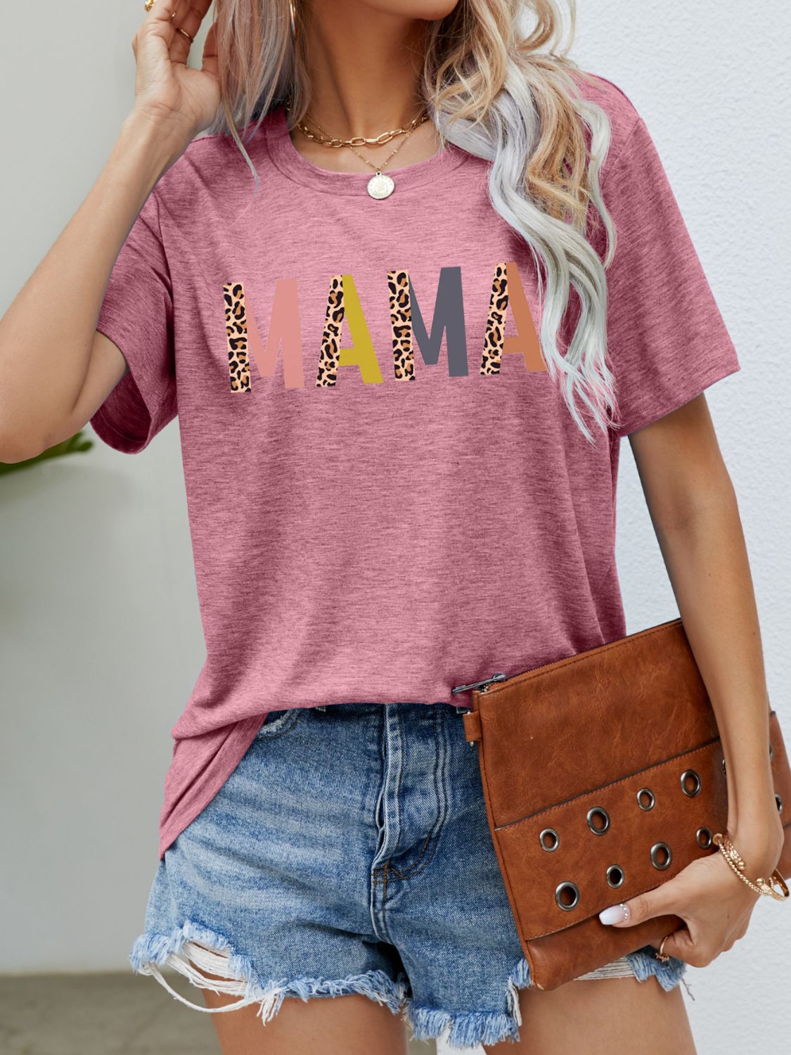 • Load image into Gallery viewer, MAMA Leopard Graphic Short Sleeve Tee