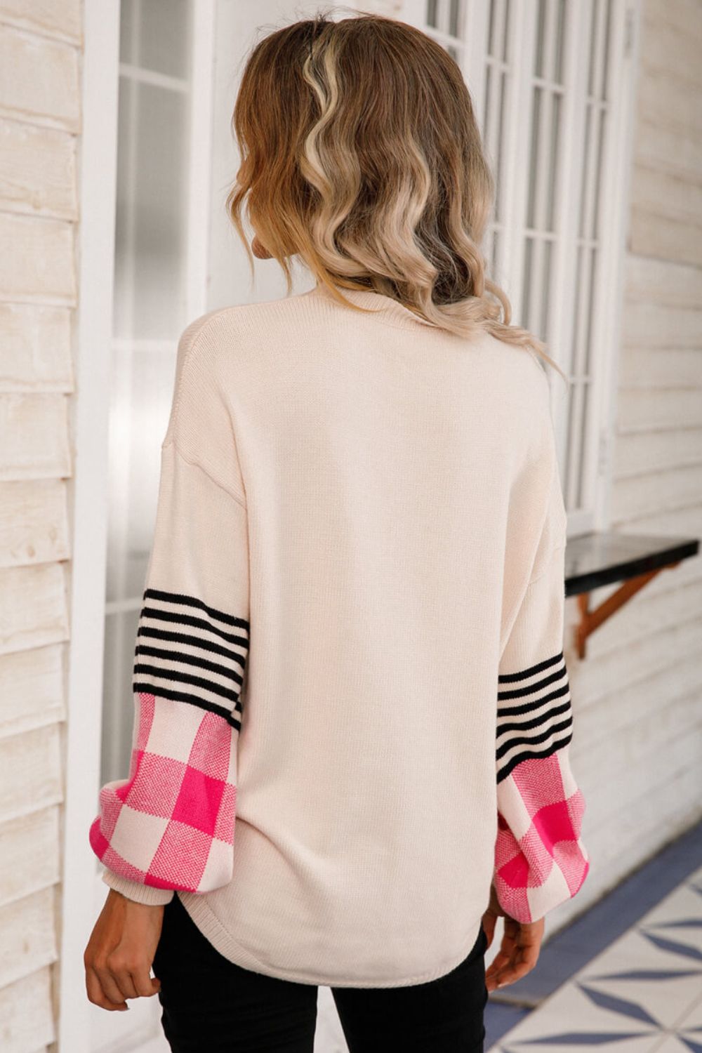 • Load image into Gallery viewer, Mixed Print Curved Hem Knit Pullover