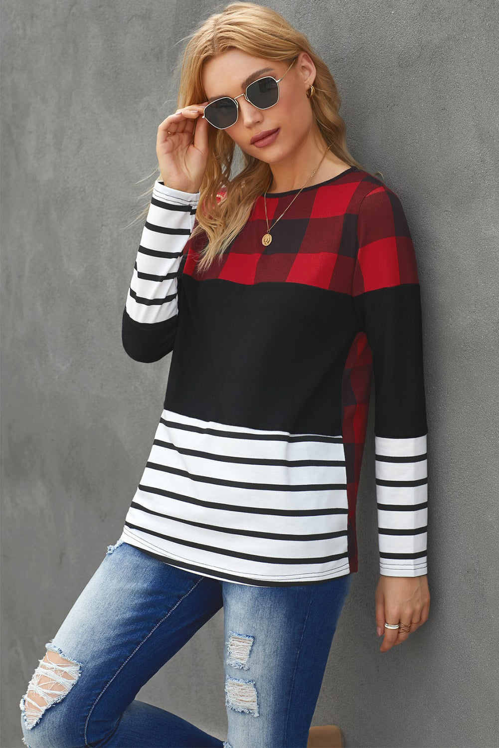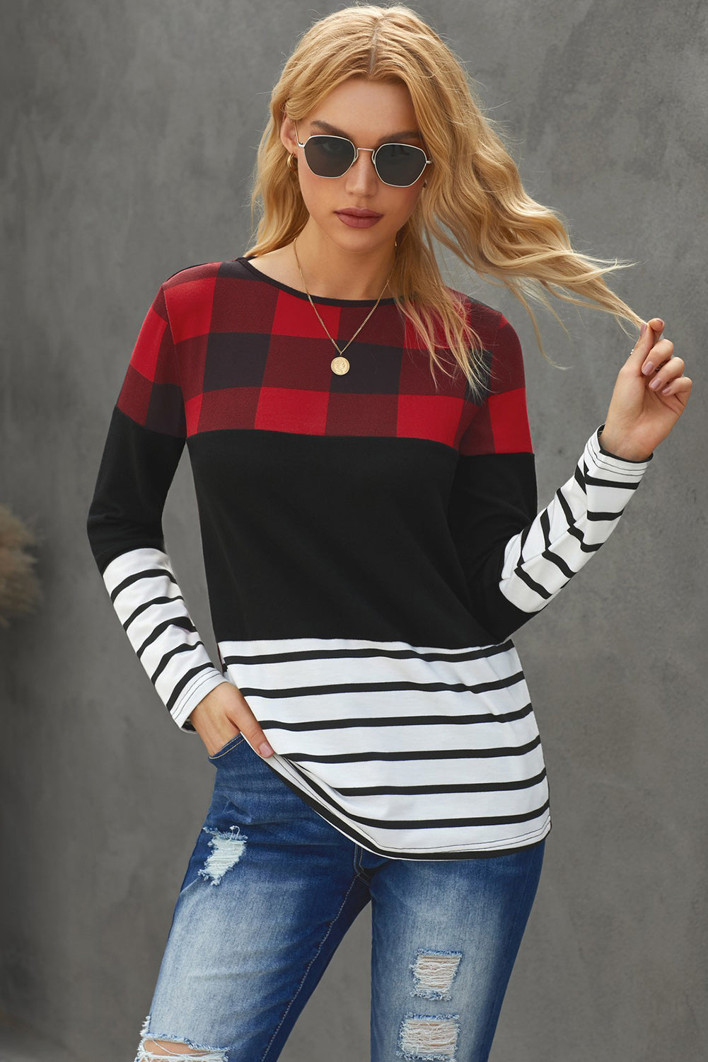 - Features: Long sleeves, spliced top