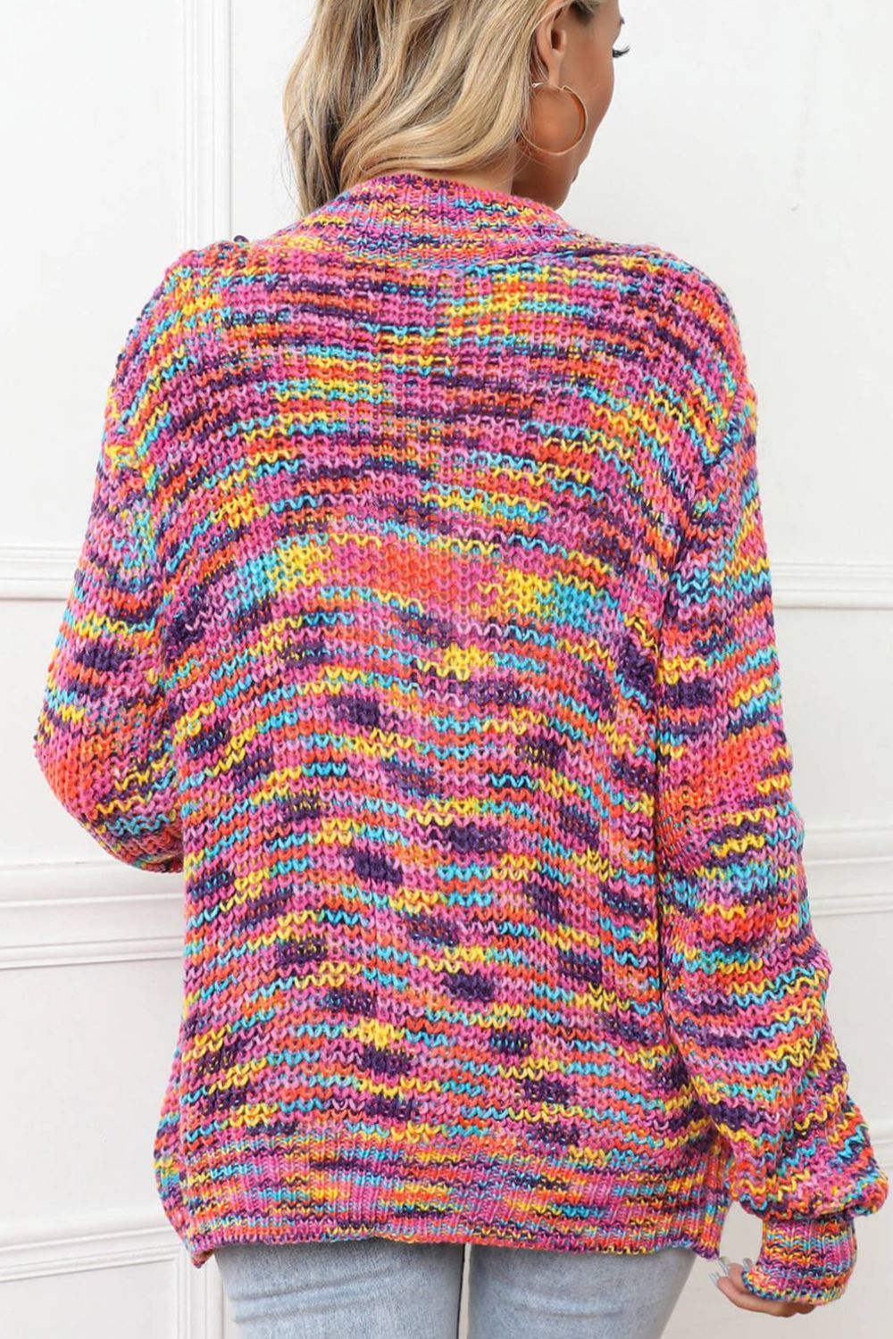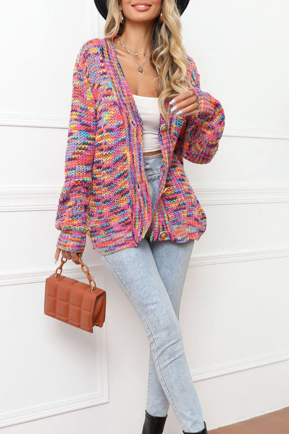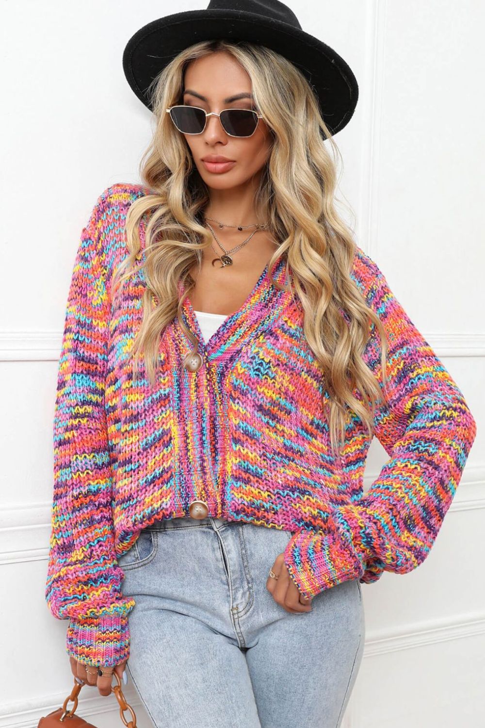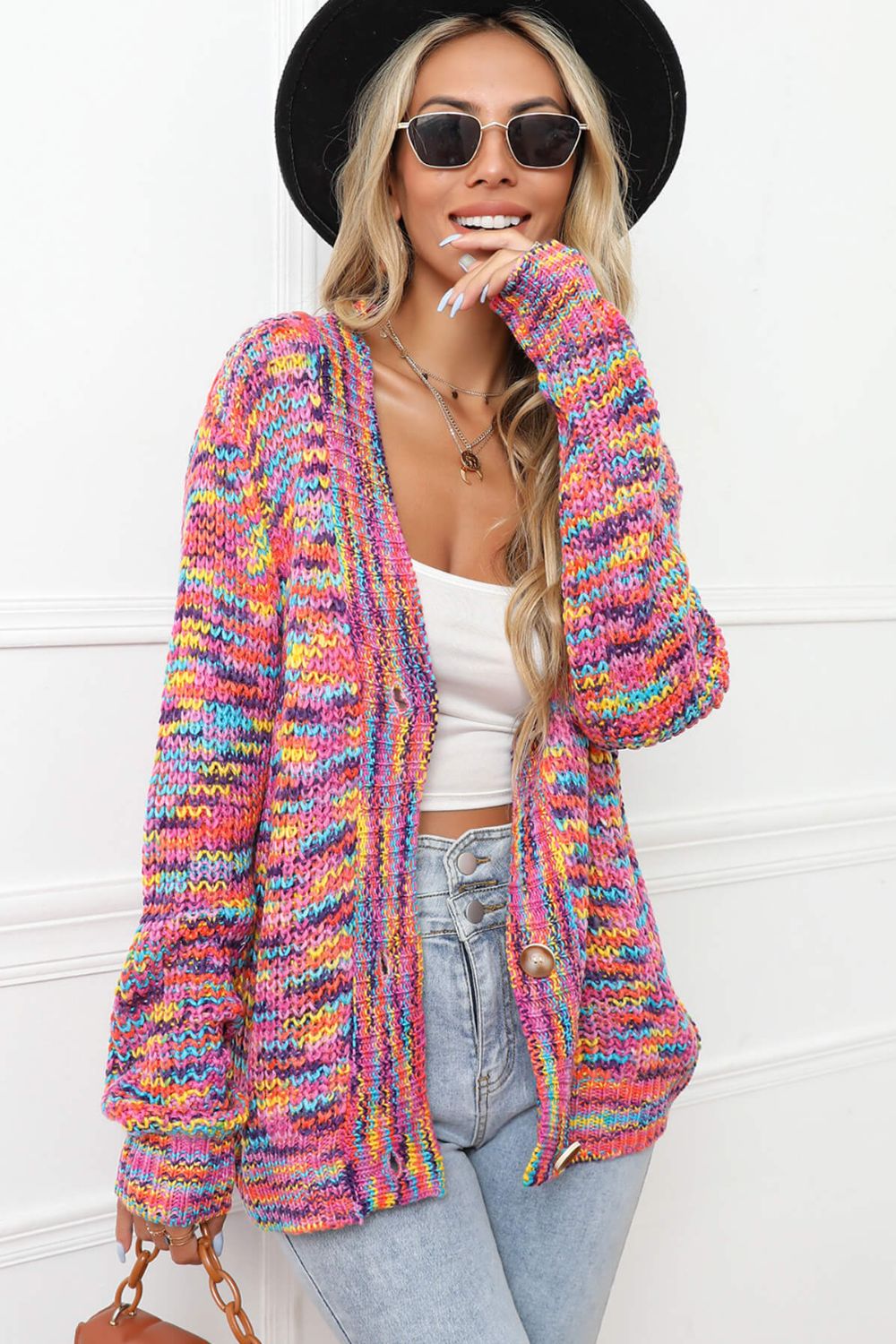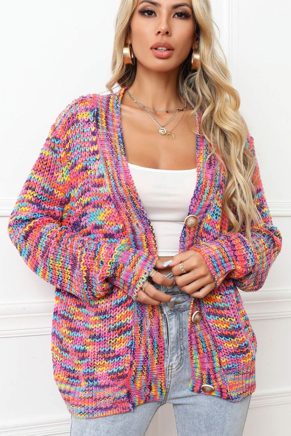 Multicolored Button-Down Dropped Shoulder Cardigan