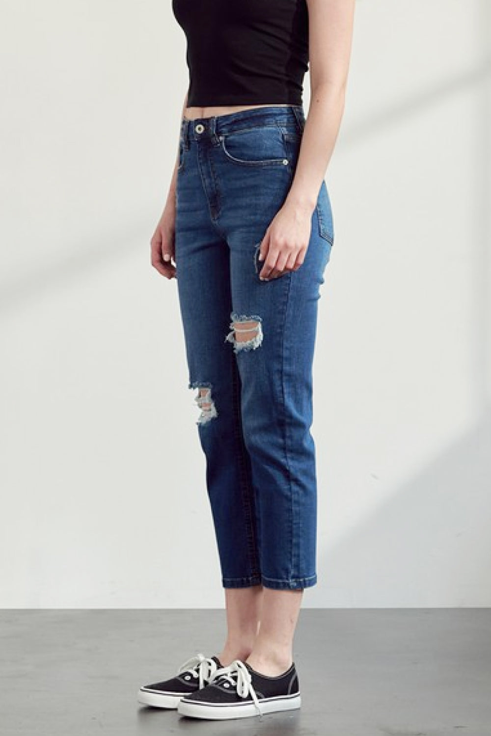 Our High-Rise Distressed Jeans offer a comfortable amount of stretch. They feature pockets and are made from high-quality fabric, which is breathable and durable. Pair it with a bomber jacket or white tee for a casual look.