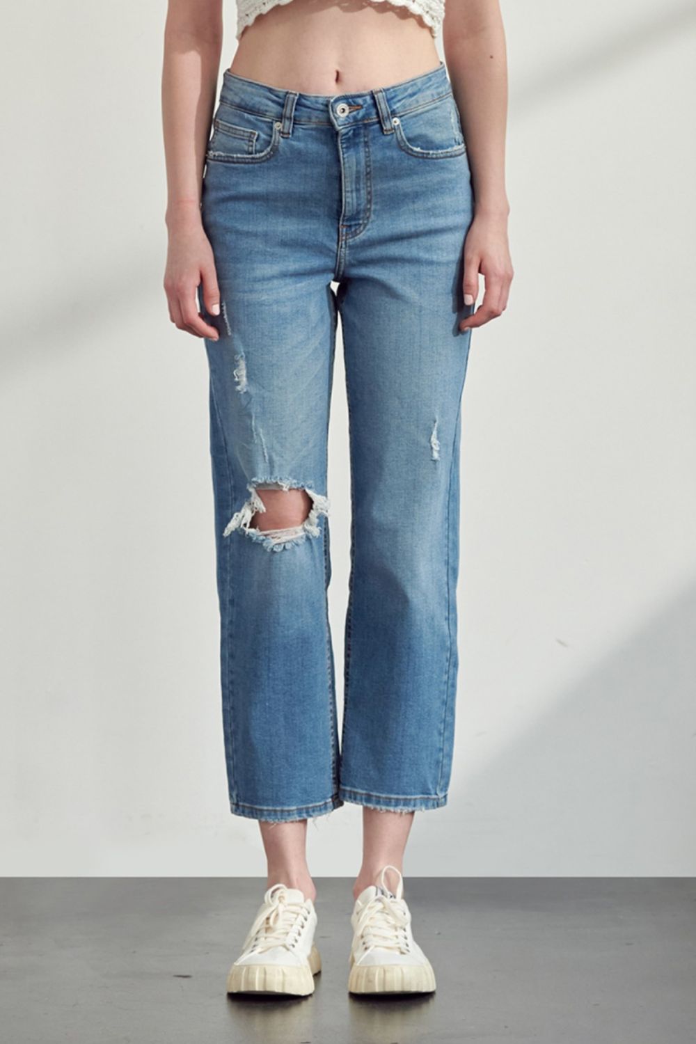 Upgrade your denim collection with these distressed cropped jeans. With roomy pockets and a super-flattering fit, you'll be ready for anything in these comfortable pairs of jeans.