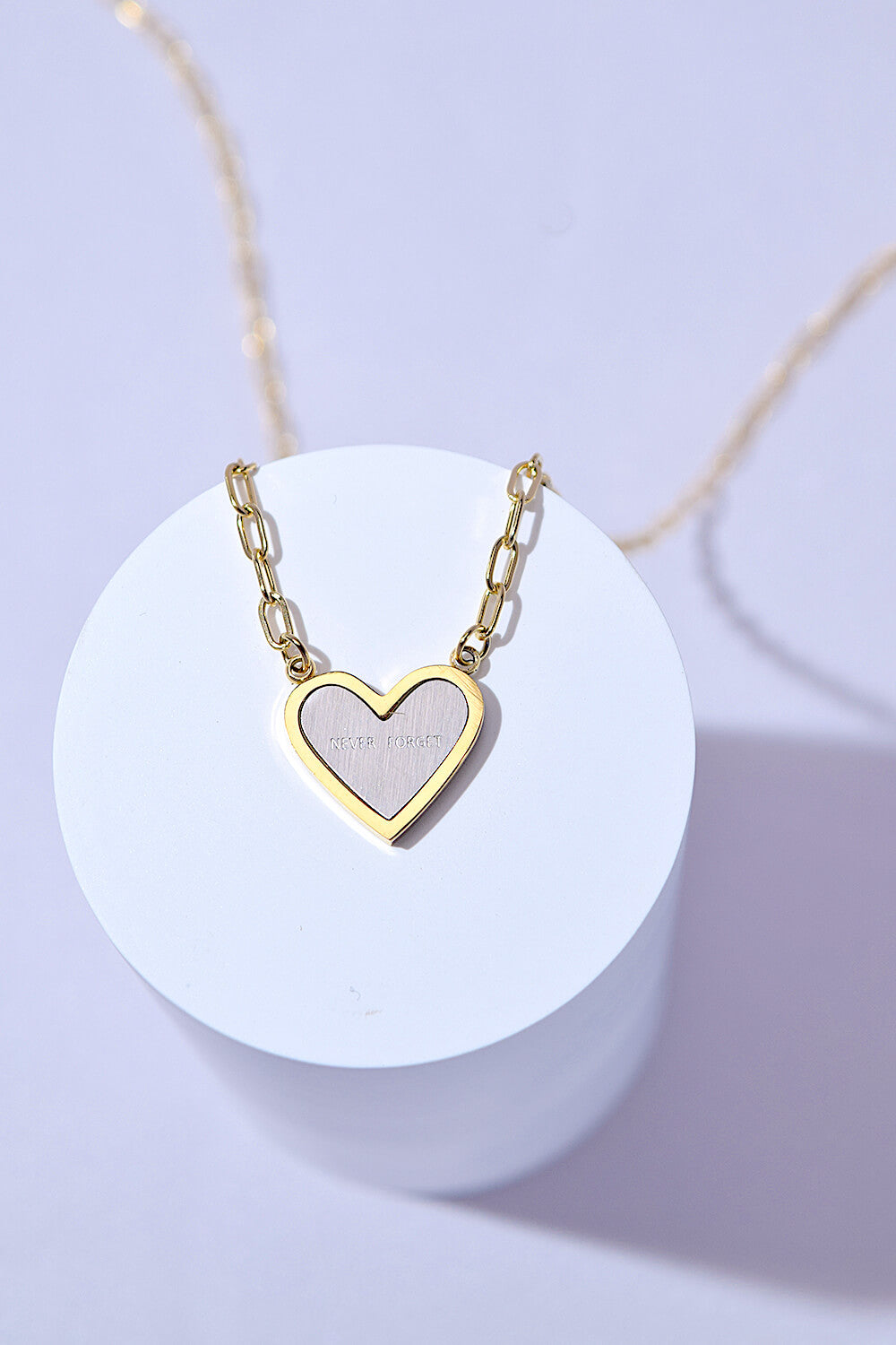 - Features: Plated in 14k gold, NEVER FORGET inscription in heart pendant