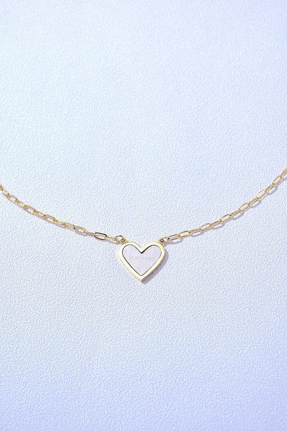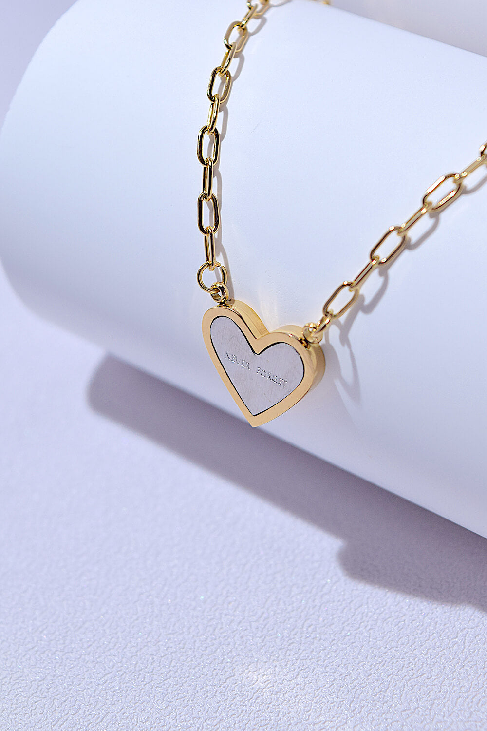 This gold-plated heart pendant necklace will keep whatever is dear to your heart nearby, with the "Never Forget" inscription.