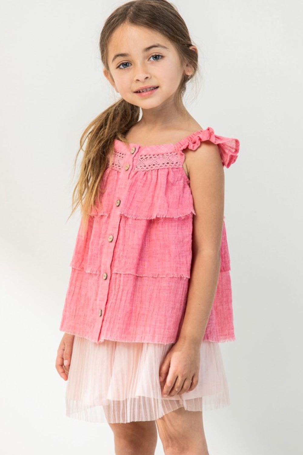 • Load image into Gallery viewer, ODDI Girls Buttoned Ruffled Top