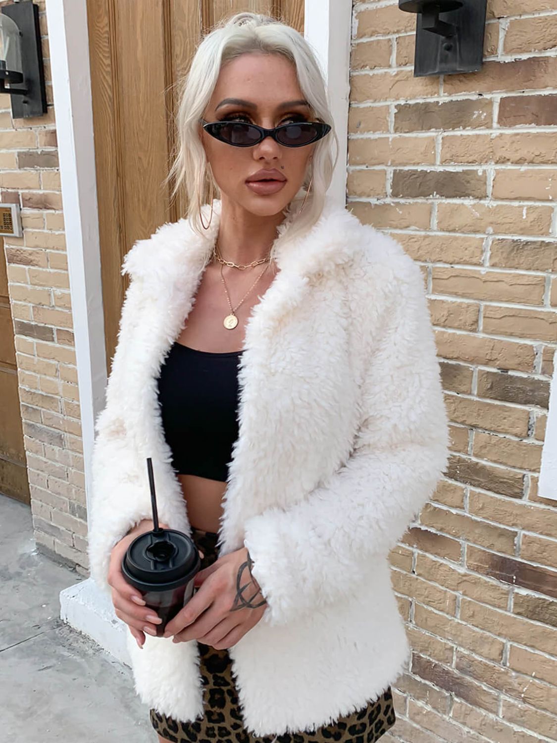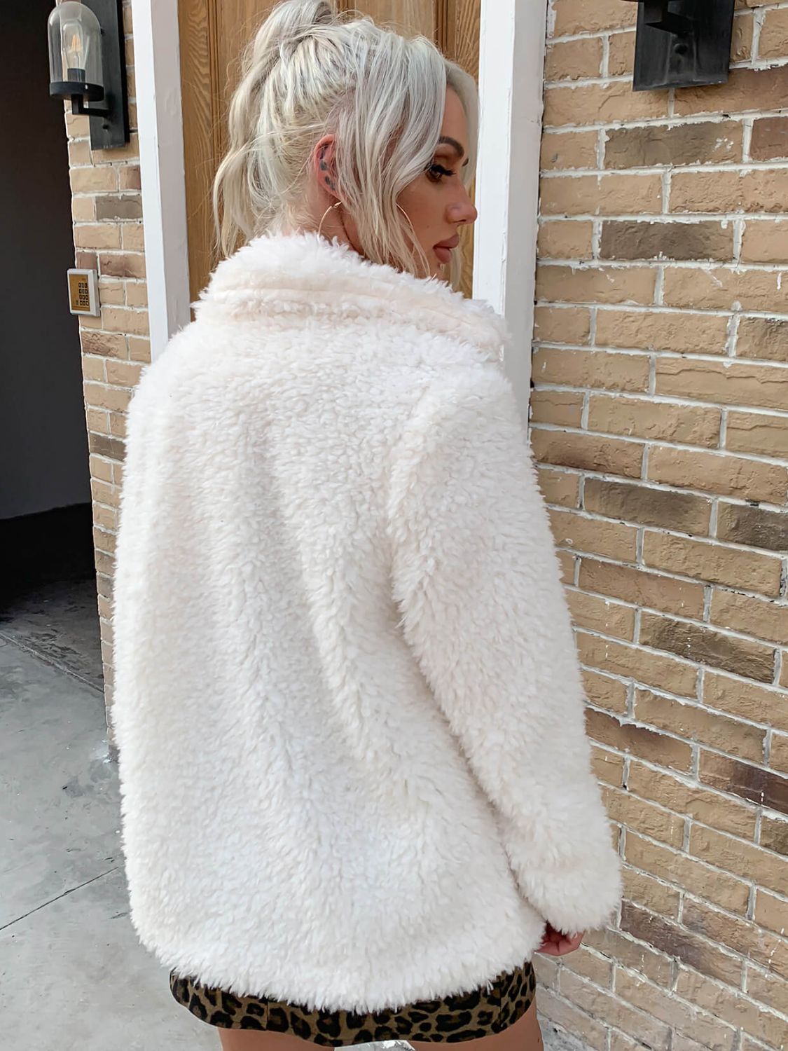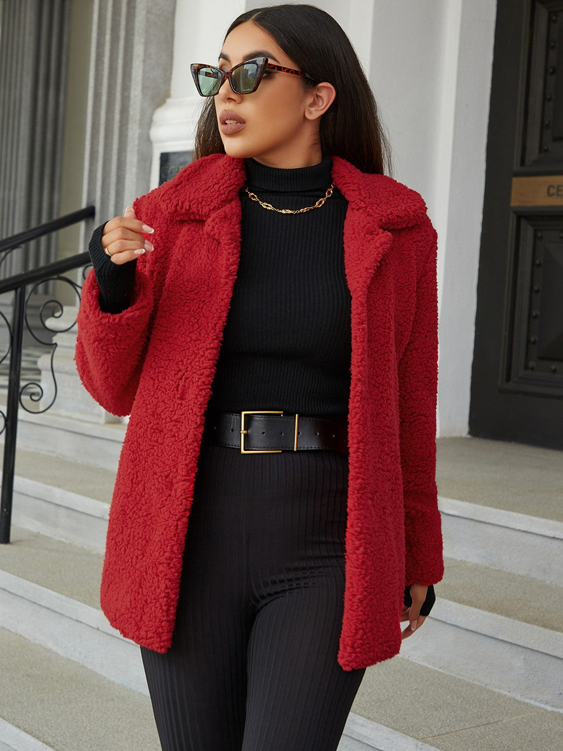 - Neckline: Collared neck