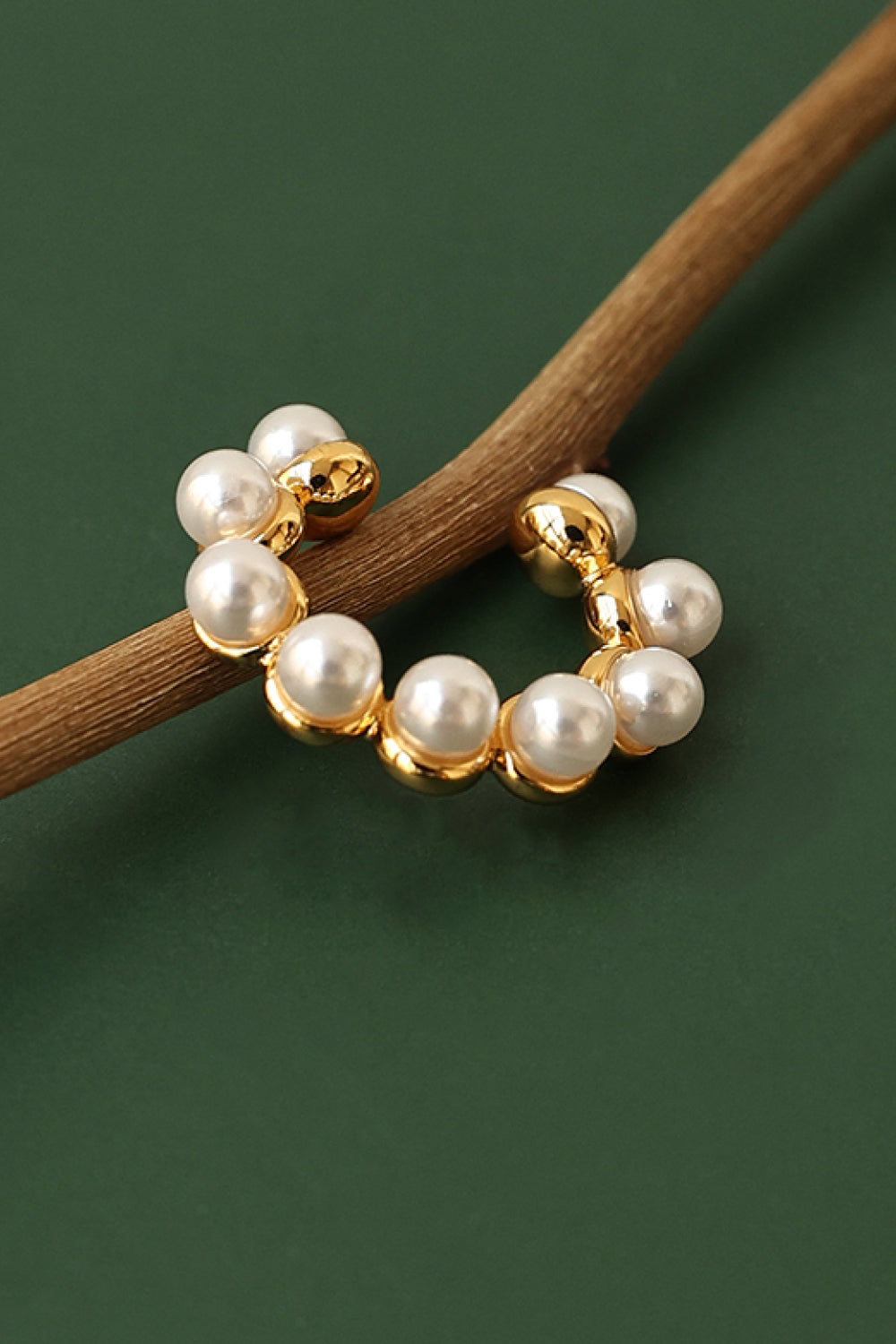 Pearls are the ultimate expression of luxury. Pearl C-shaped Ear Cuffs in brass make a statement, whether worn with our strappy evening gowns or on an outing with your friends.