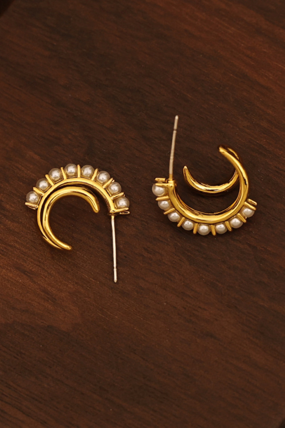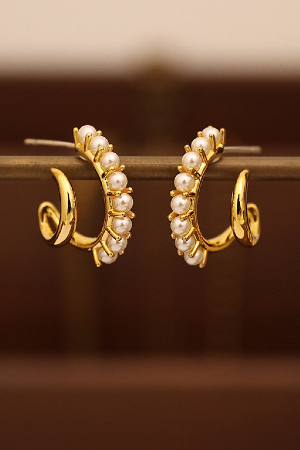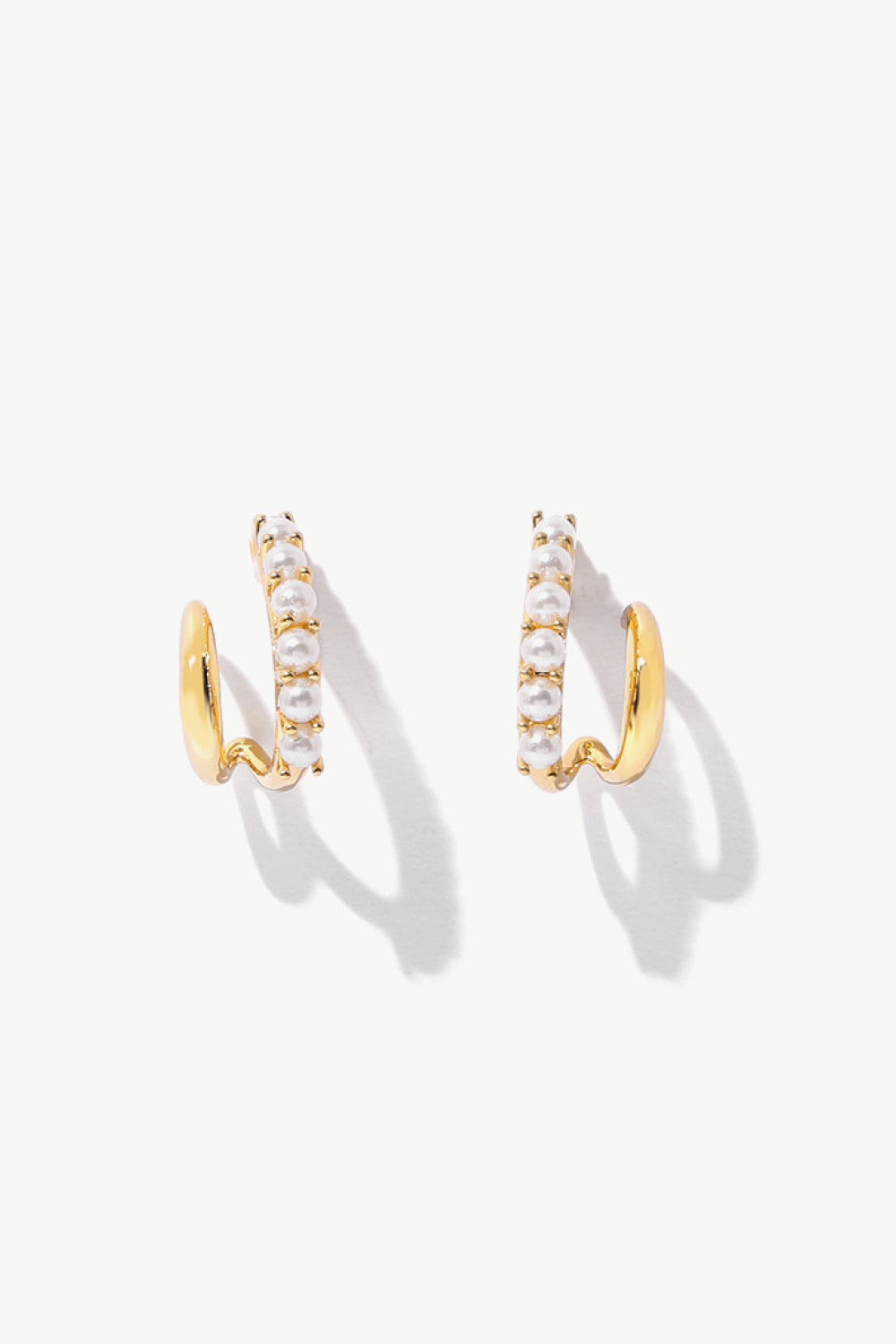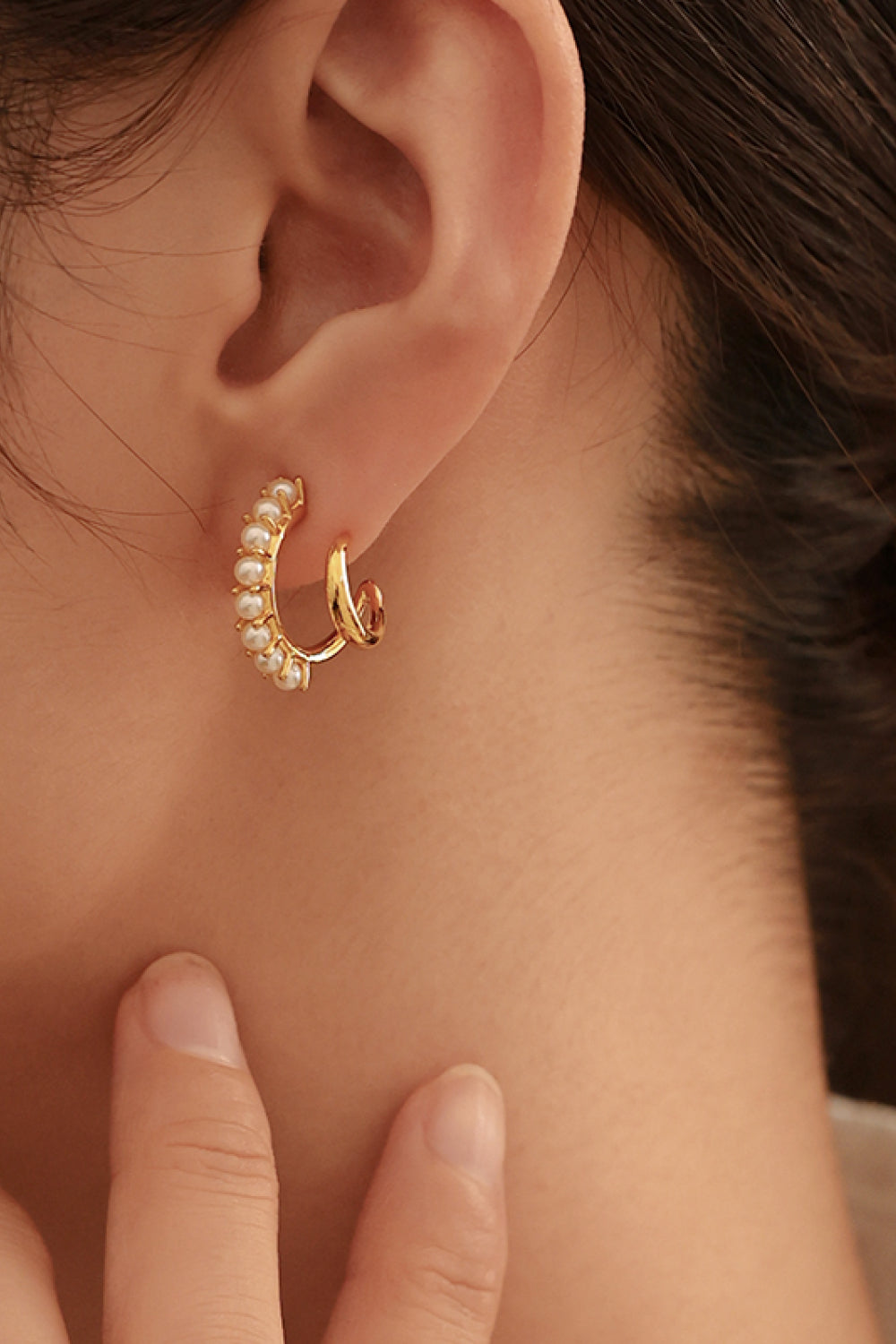 • Load image into Gallery viewer, Pearl Double-Layered C-Hoop Earrings