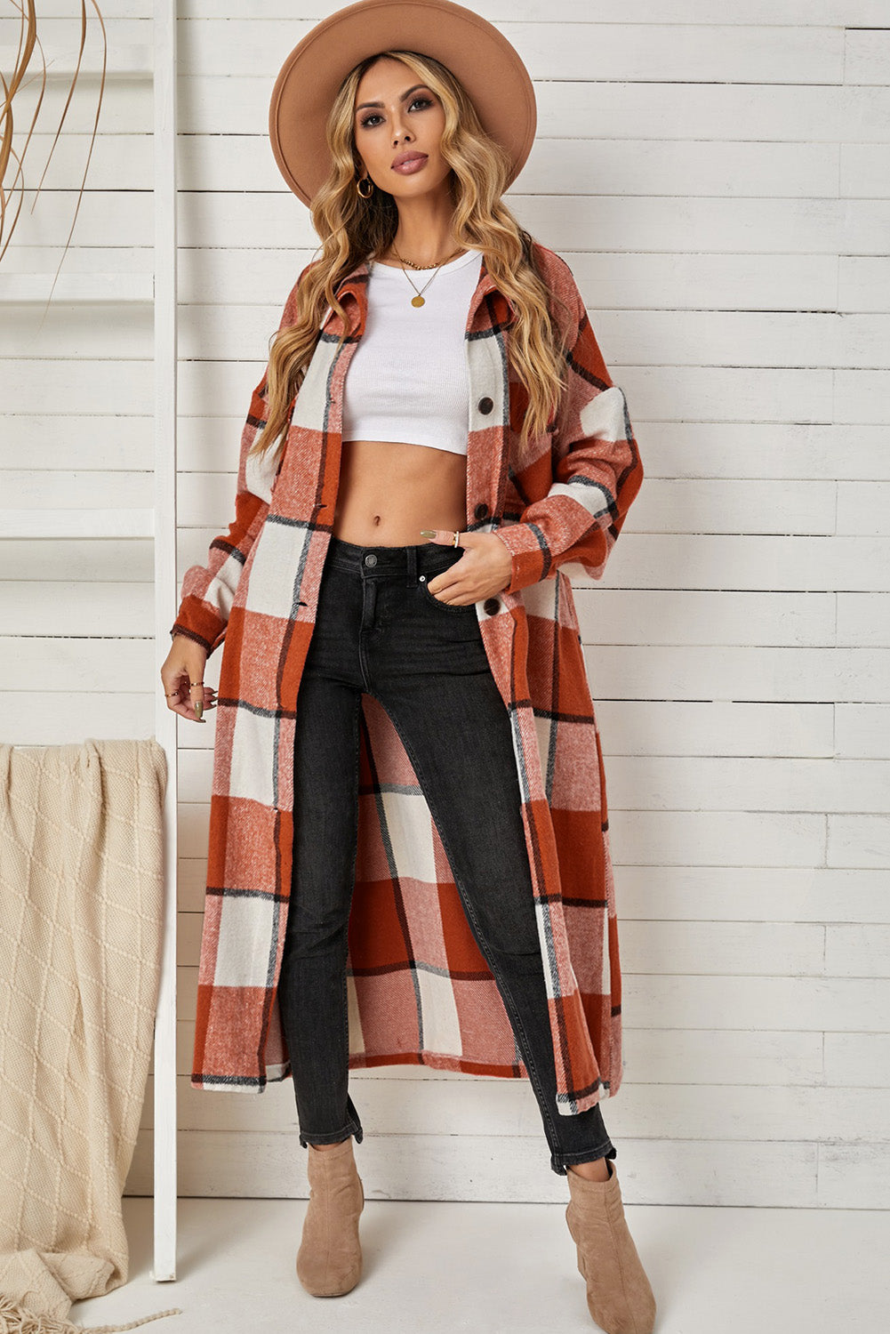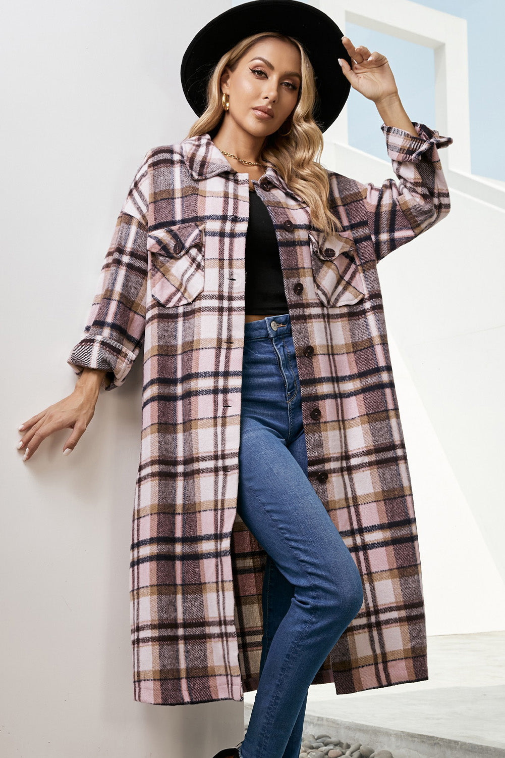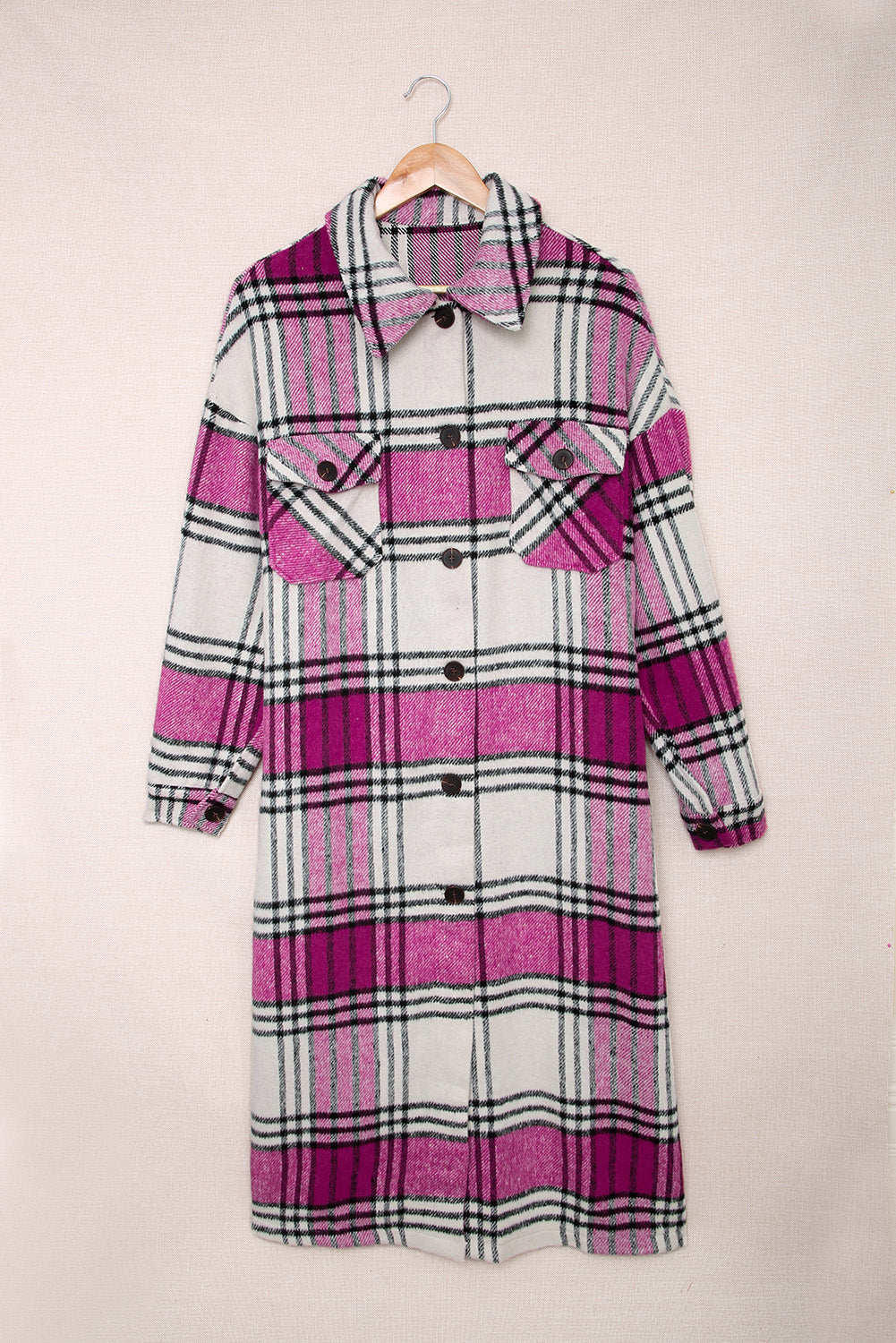 - Plaid Duster Coat with Breast Pockets DIBS DUSTER