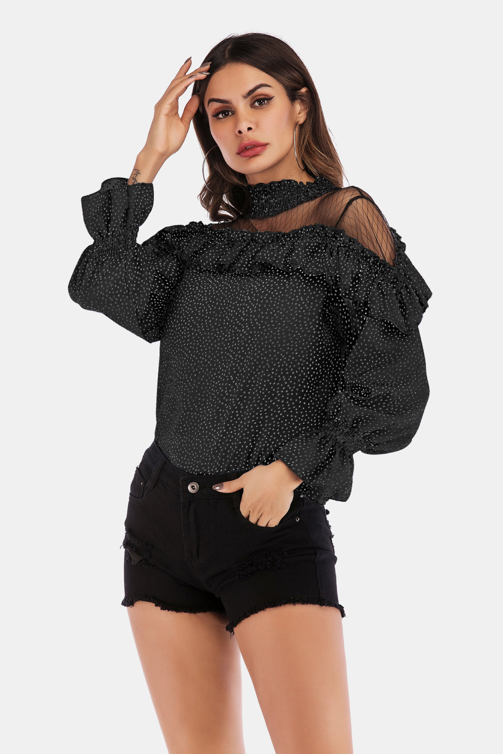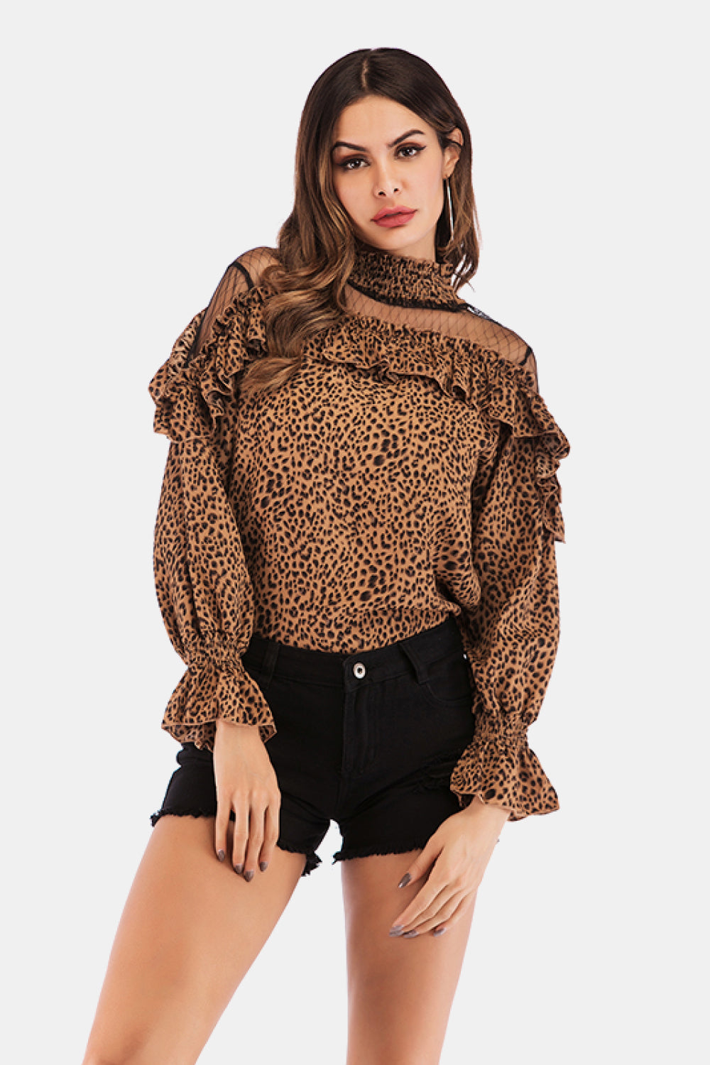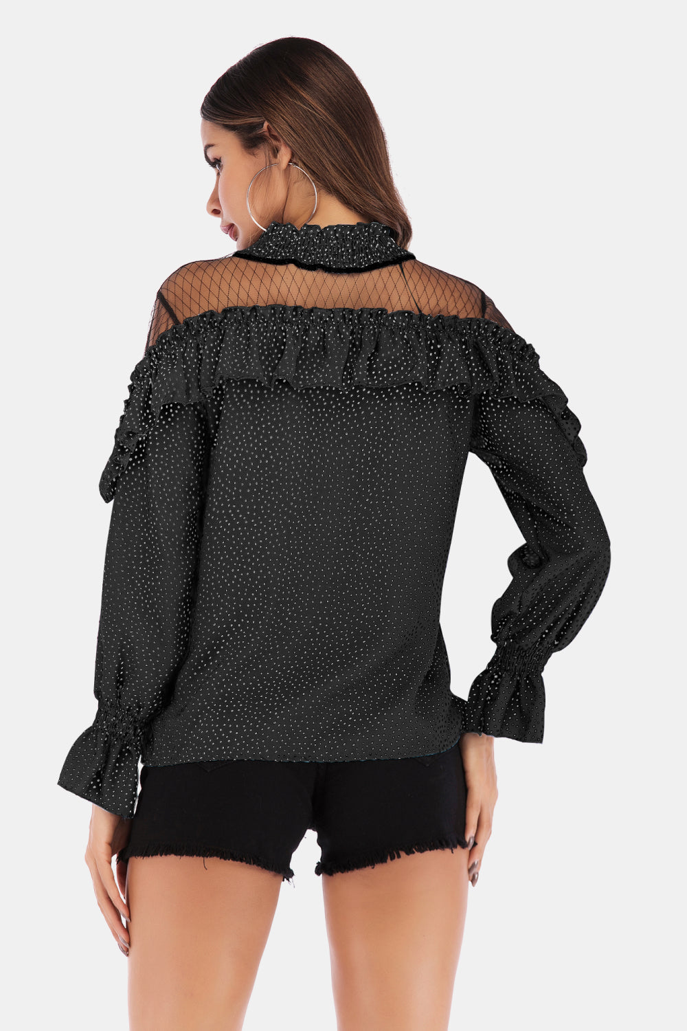 Printed Ruffle Collar Flounce Sleeve Blouse