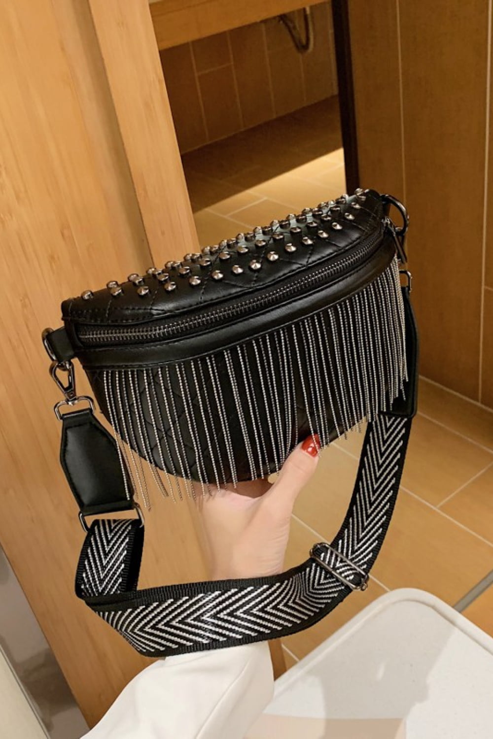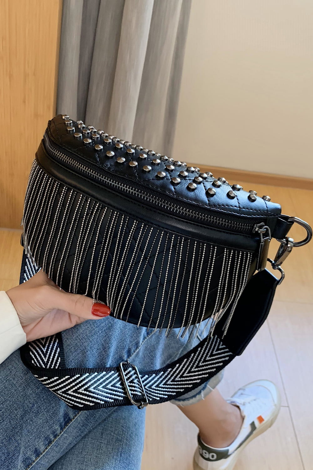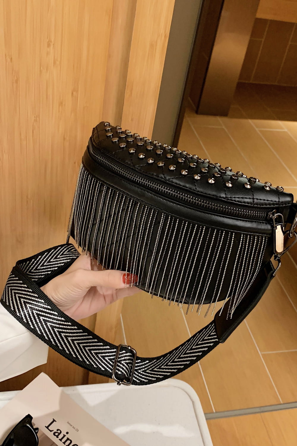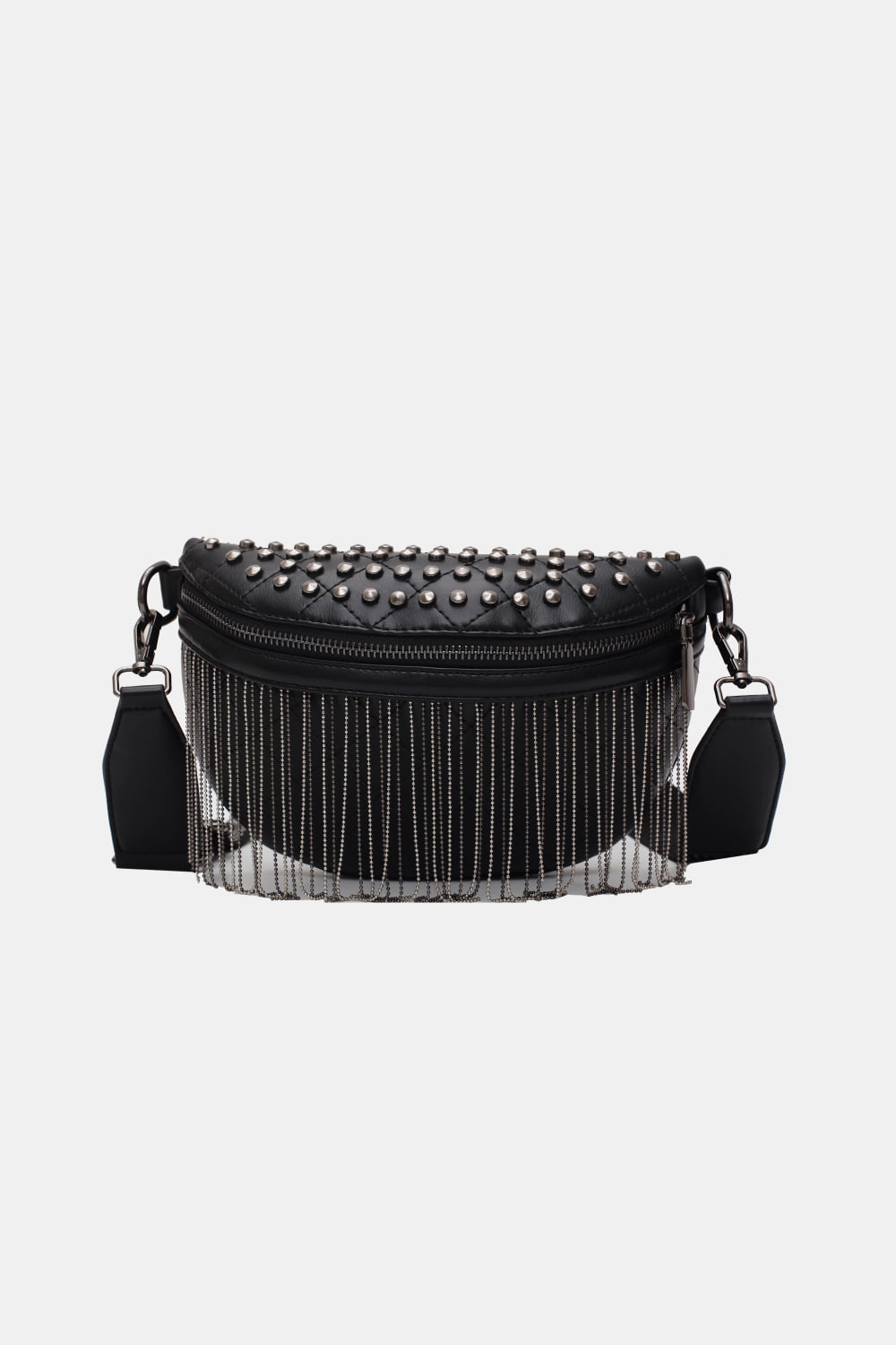 • Load image into Gallery viewer, PU Leather Studded Sling Bag with Fringes