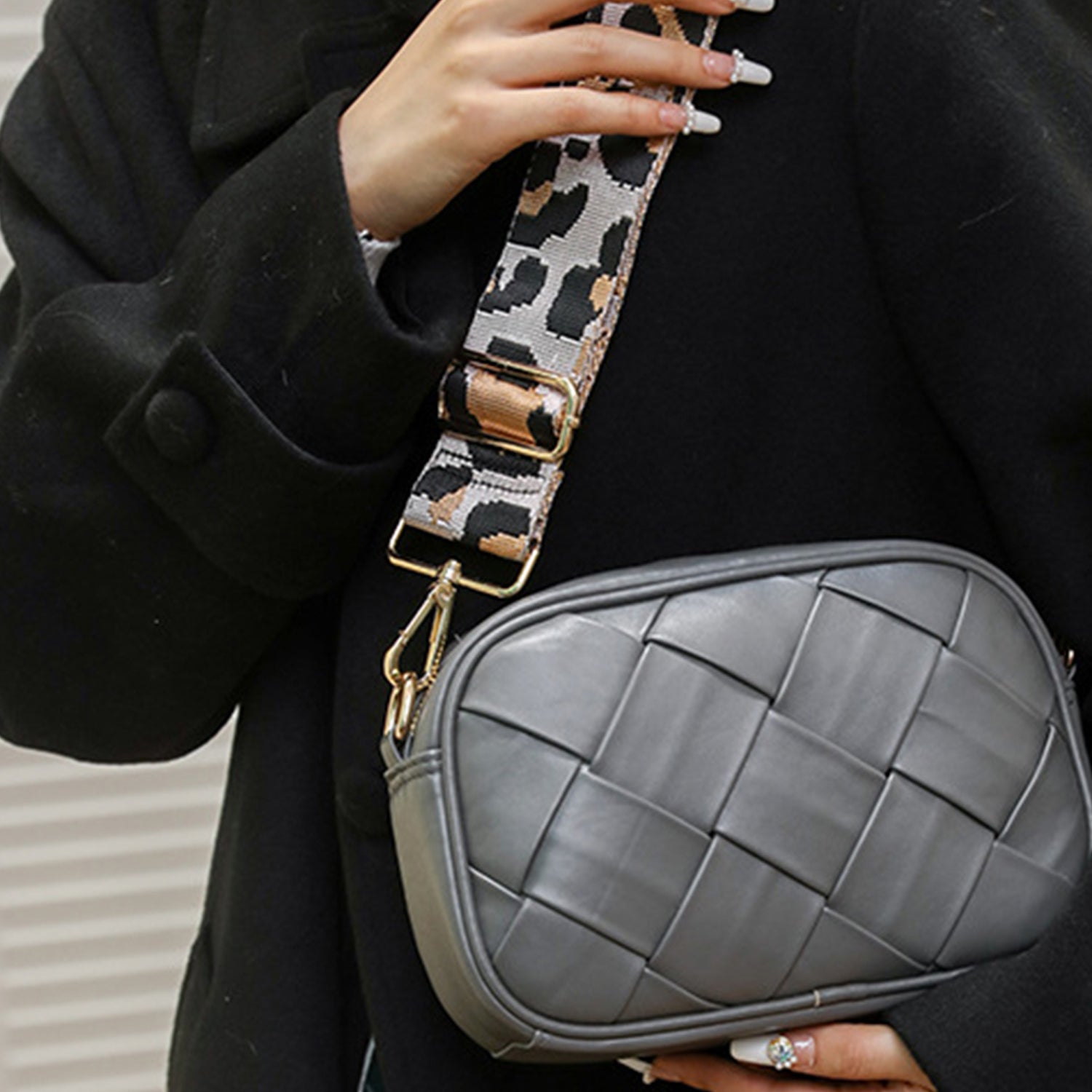 PU Leather Woven Crossbody Bag