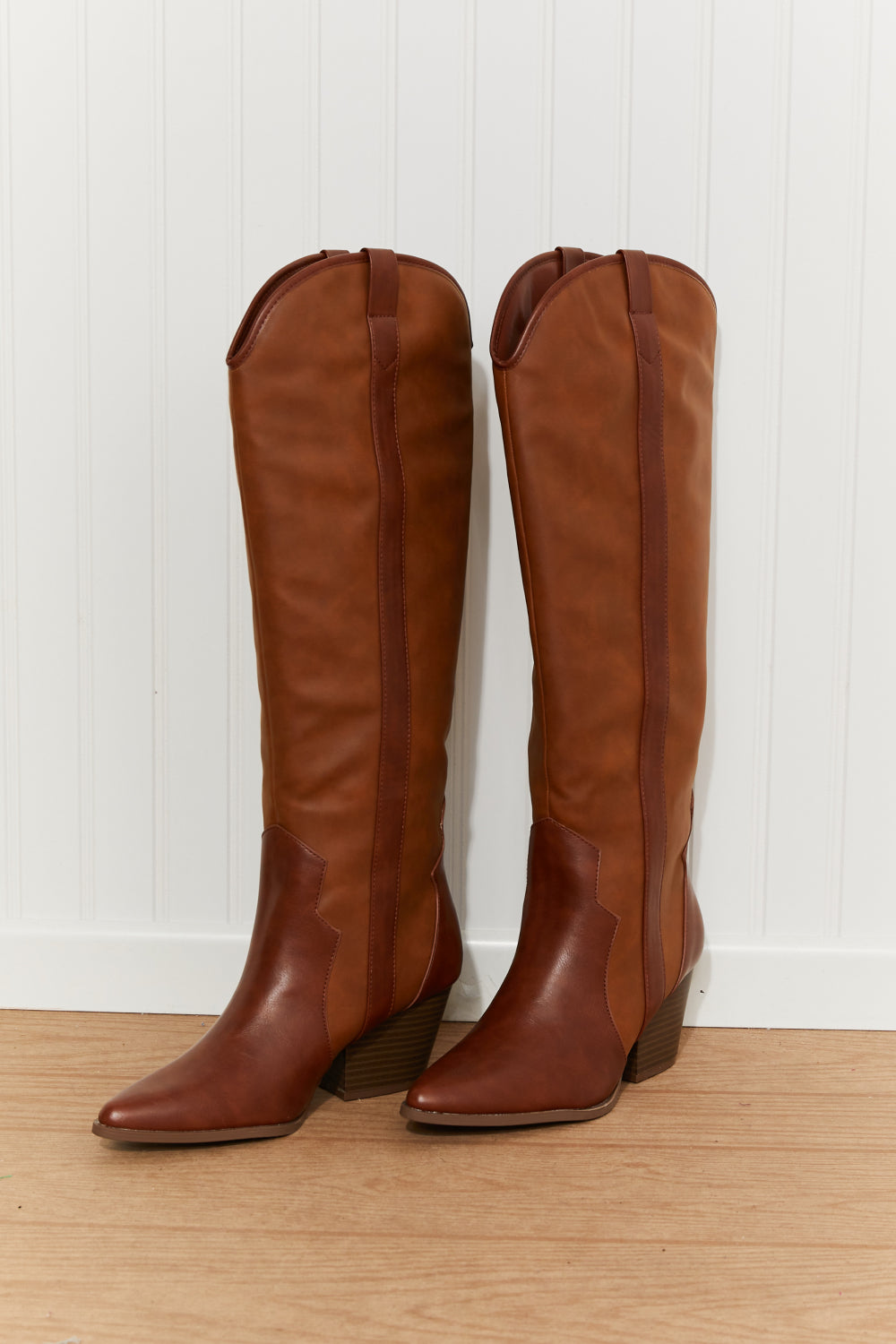 Qupid Countryside Contrast Knee High Cowboy Boots