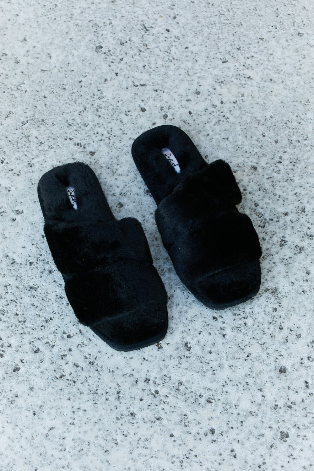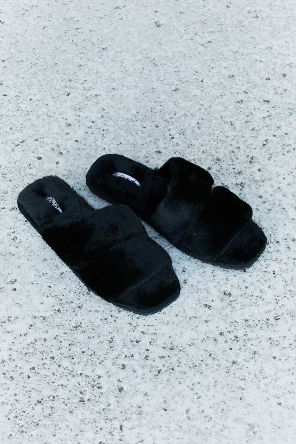 These faux fur slides are here to make your feet comfortable. They're perfect for walking around town, or even just lounging around the house. The faux fur will keep your toes warm and cozy, and the open toe design means you can wear these sandals with any outfit in your closet!