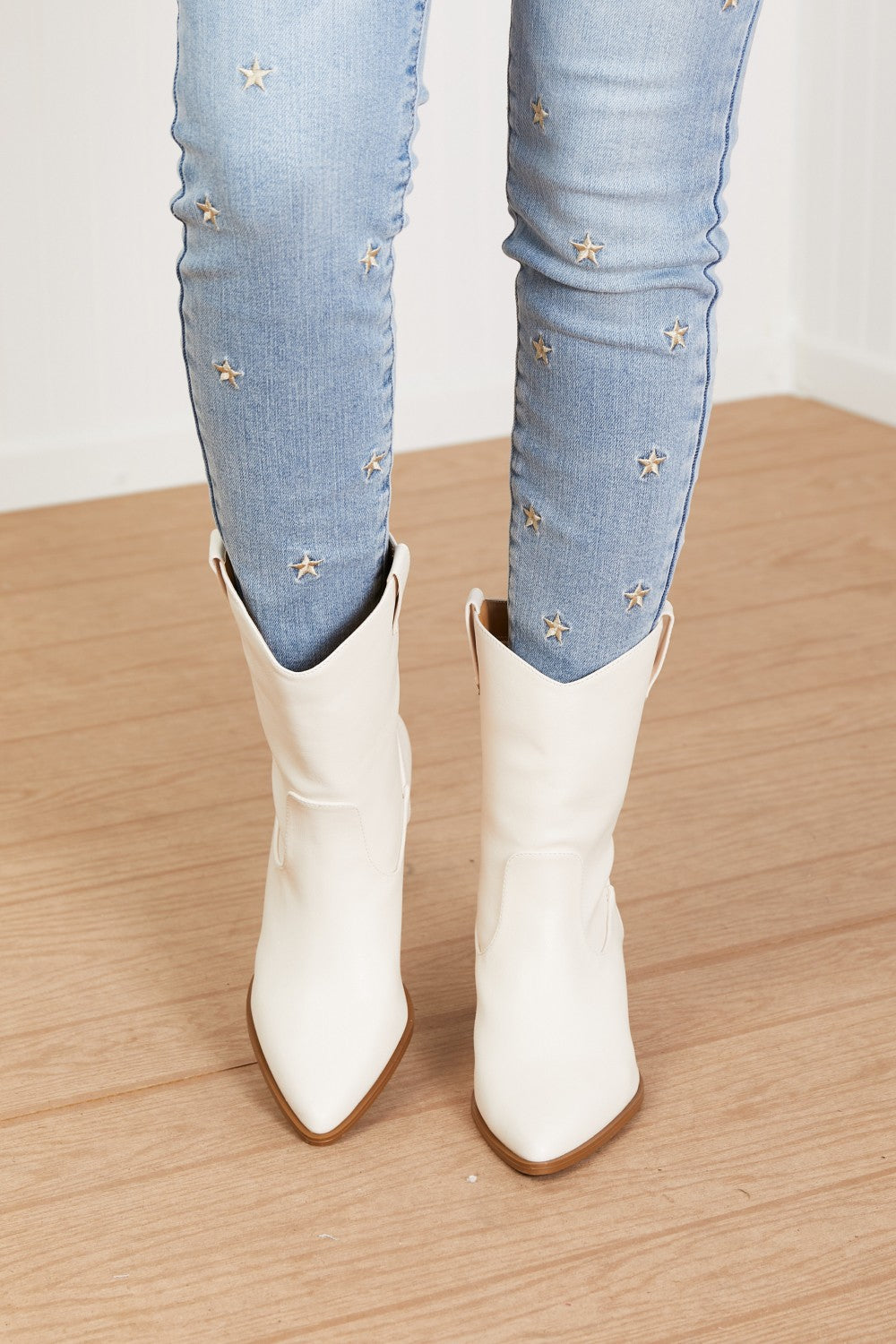 With the basic shape and style of cowboy boots, these mid-calf length shoes are all you need this season! A sleek design paired with all the classic elements of cowboy boots offers a modern and trendy pair of shoes that you will want to wear on the daily!