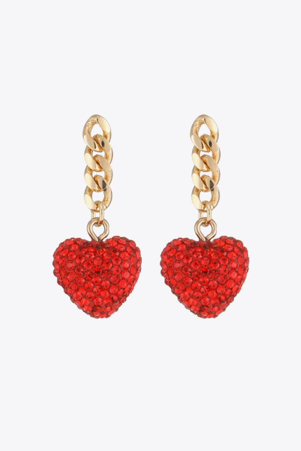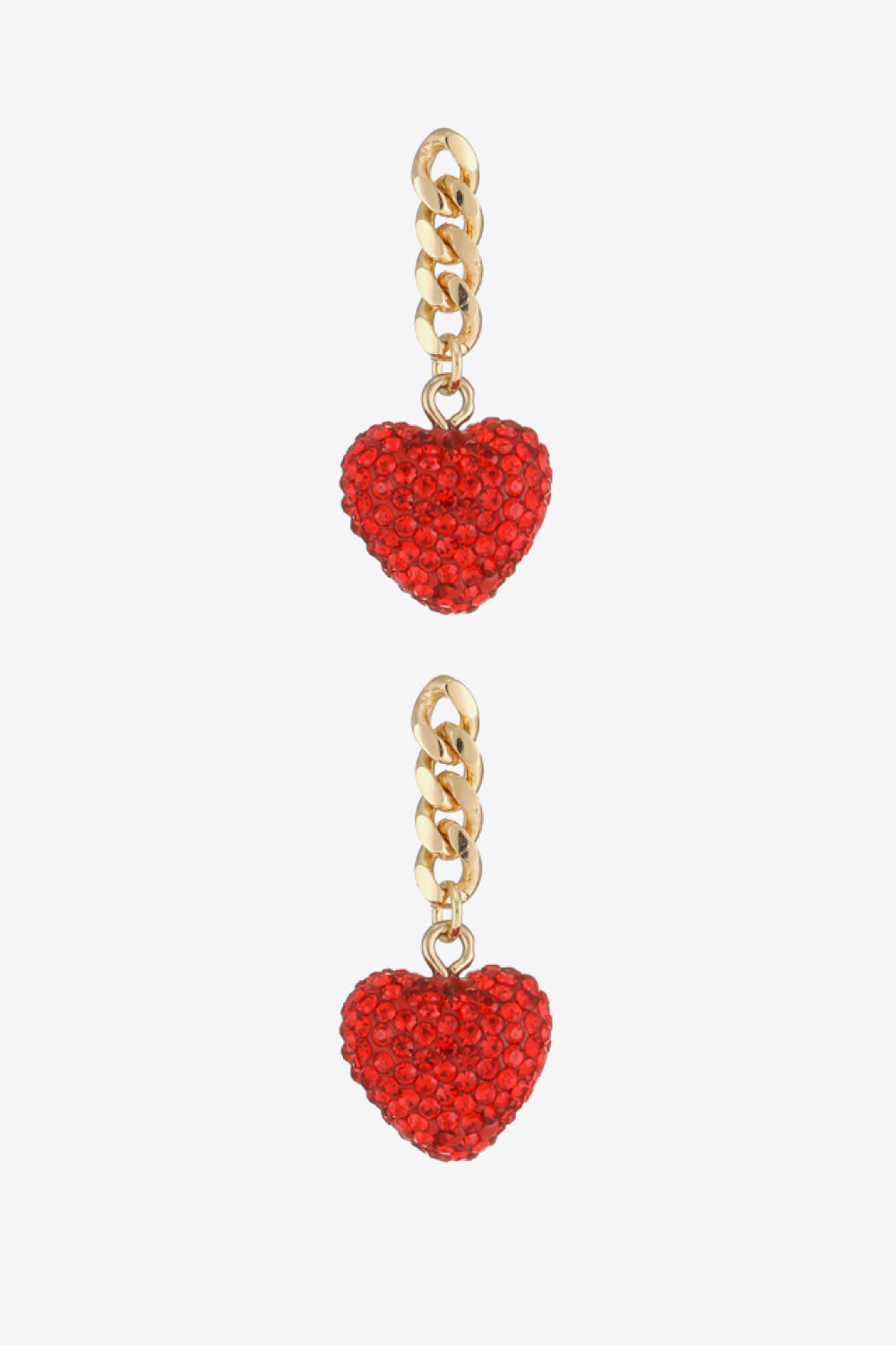 • Load image into Gallery viewer, Rhinestone Heart Chain Drop Earrings